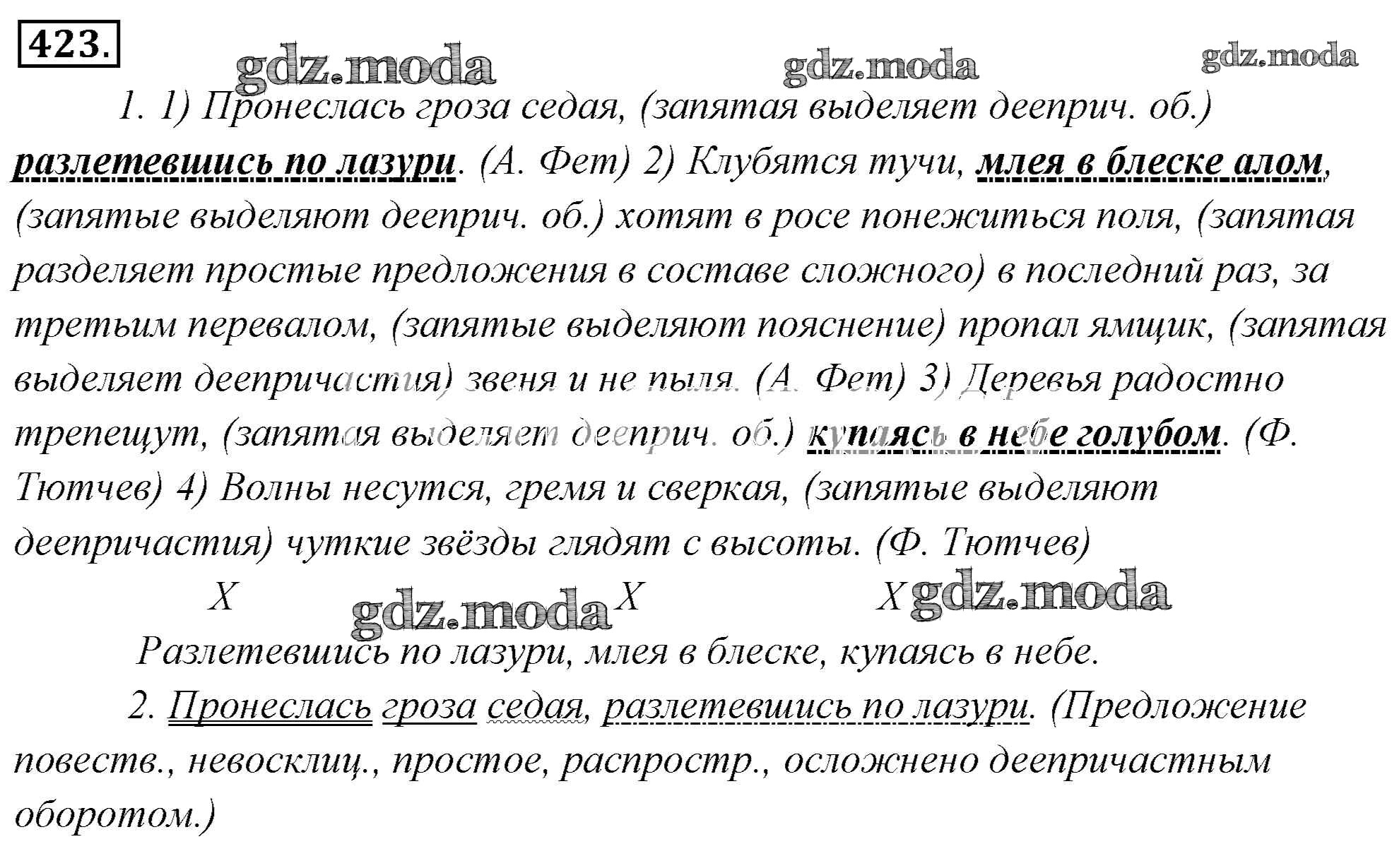ОТВЕТ на задание № 423 Учебник по Русскому языку 6 класс Львова