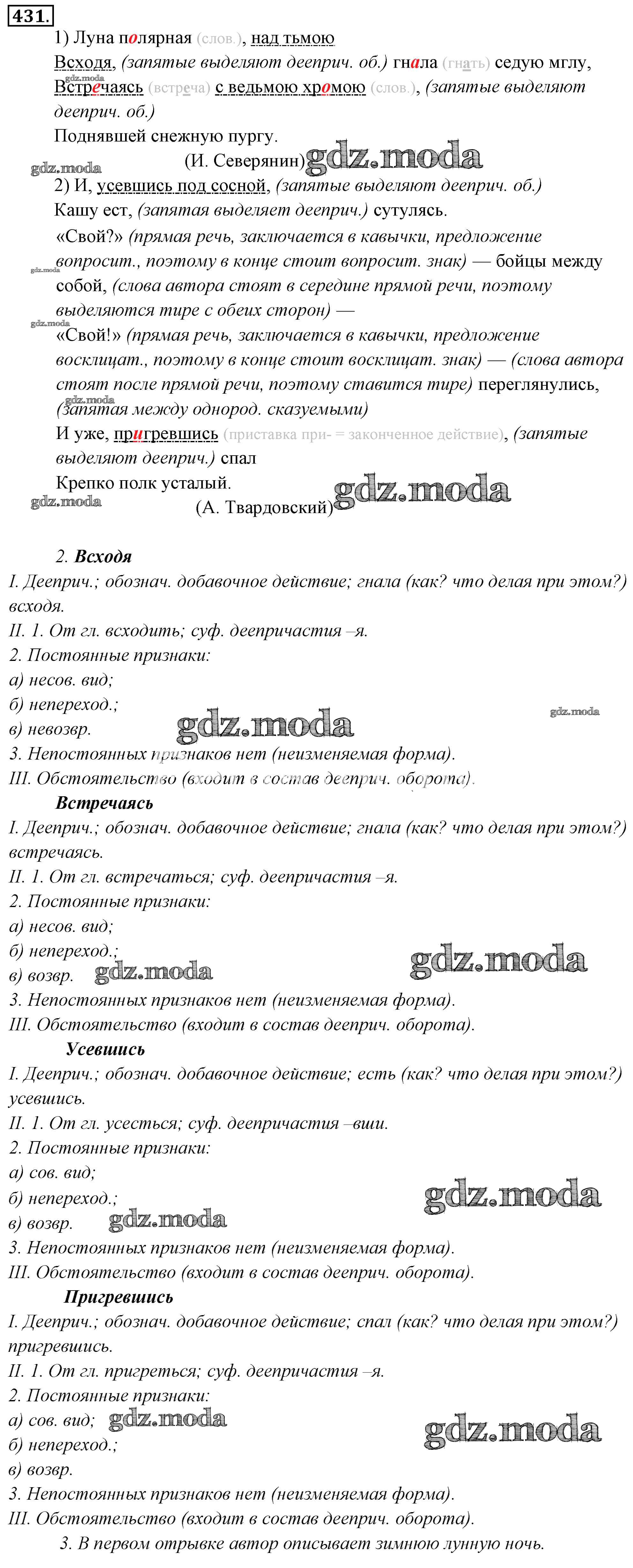 ОТВЕТ на задание № 431 Учебник по Русскому языку 6 класс Львова