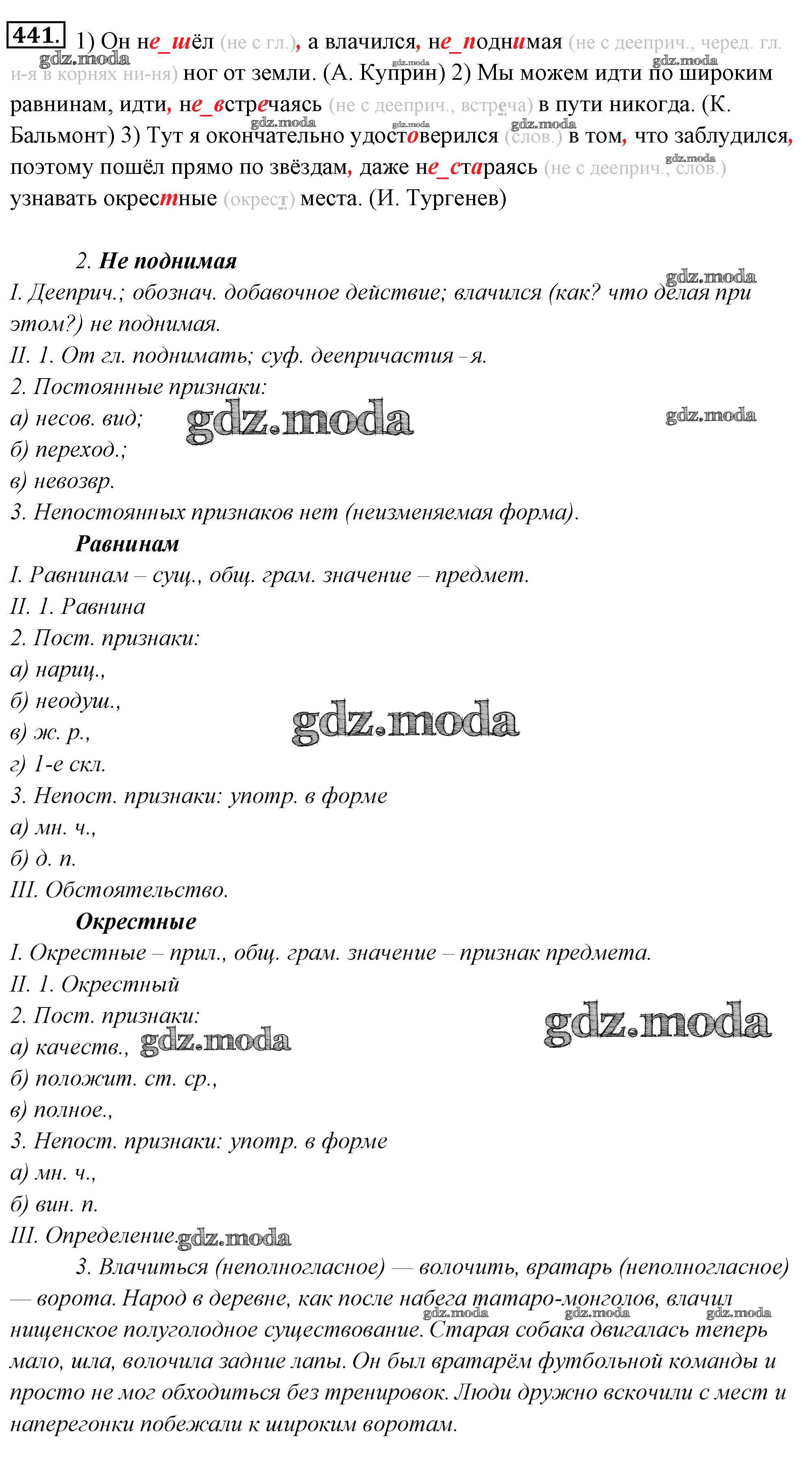 ОТВЕТ на задание № 441 Учебник по Русскому языку 6 класс Львова