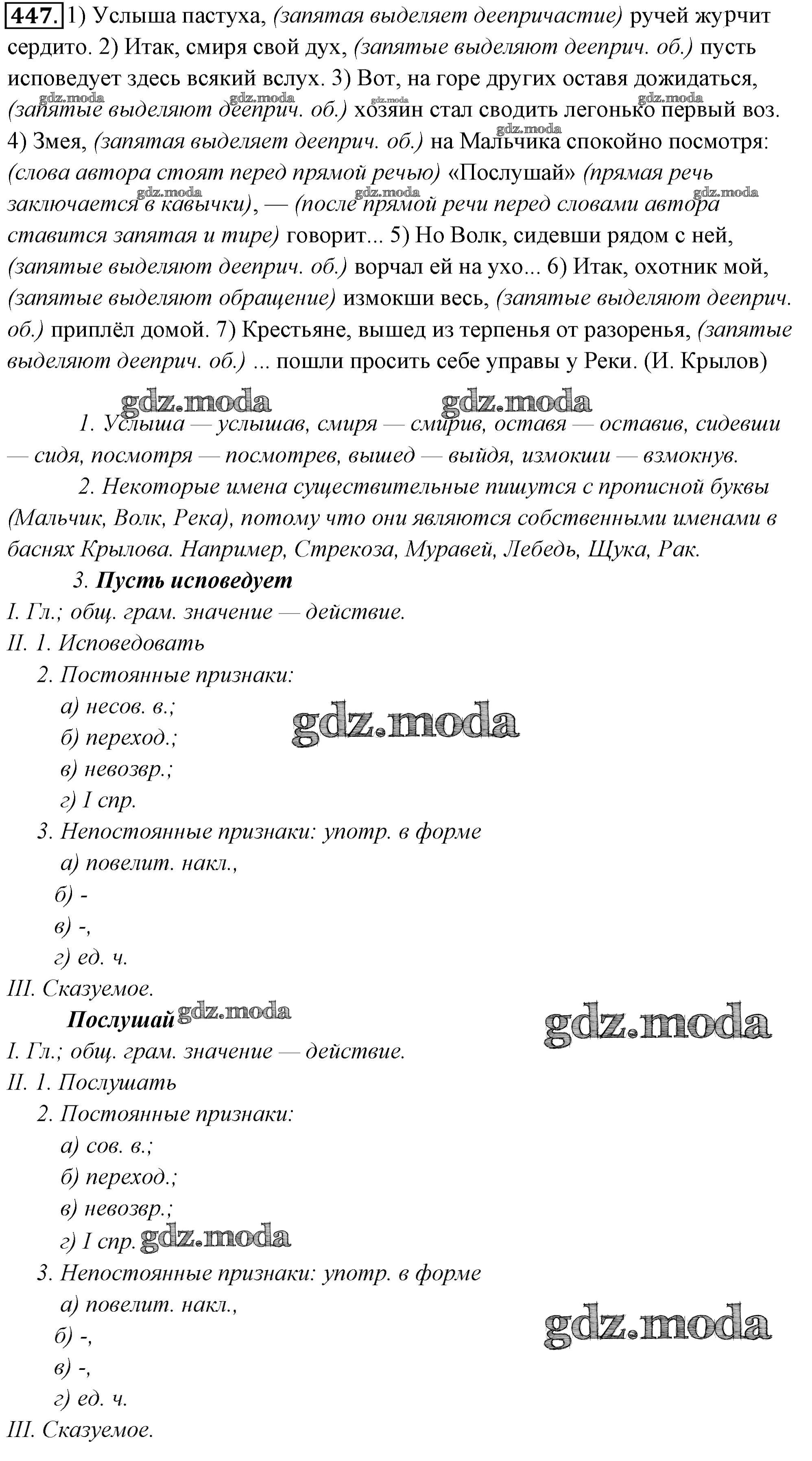 ОТВЕТ на задание № 447 Учебник по Русскому языку 6 класс Львова