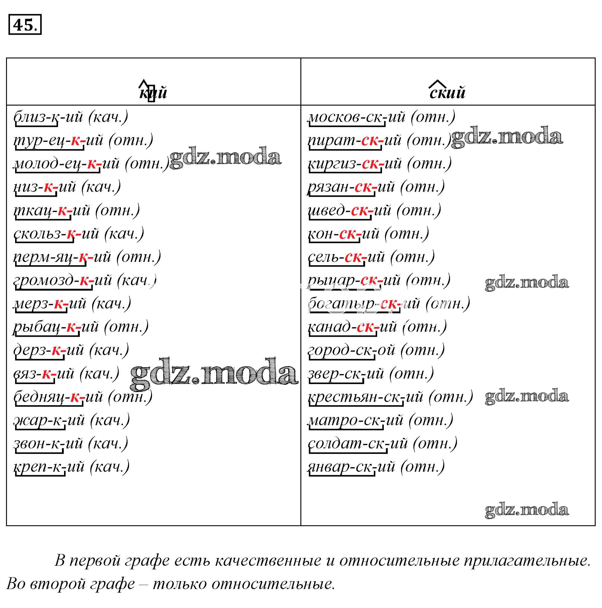 ГДЗ решение к заданию № 45 Русский язык 6 класс Львов Мнемозина 2013 Часть 1, Часть 2 ФГОС бесплатно на гдз.мода!
