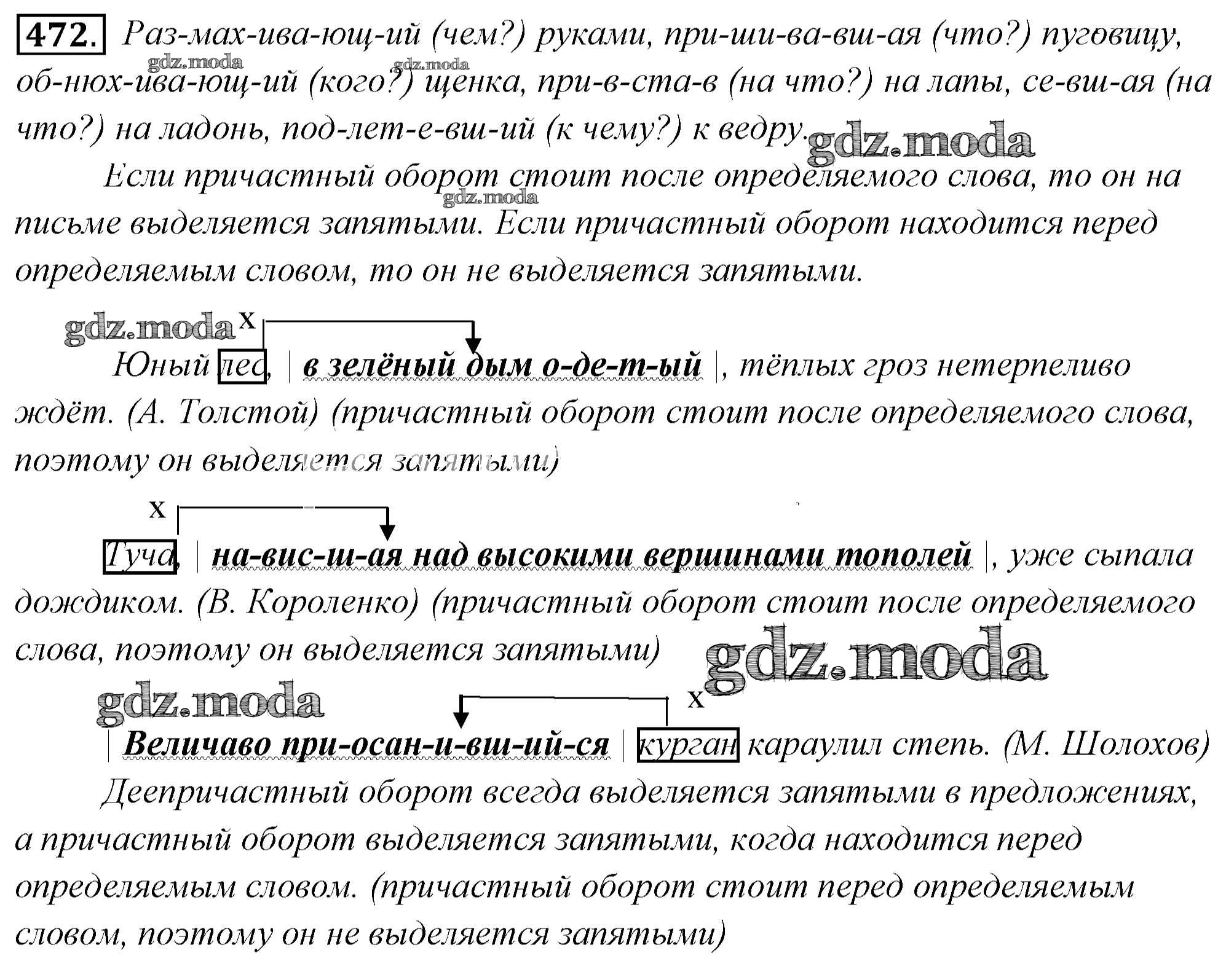 ГДЗ решение к заданию № 472 Русский язык 6 класс Львов Мнемозина 2013 Часть 1, Часть 2 ФГОС бесплатно на гдз.мода!
