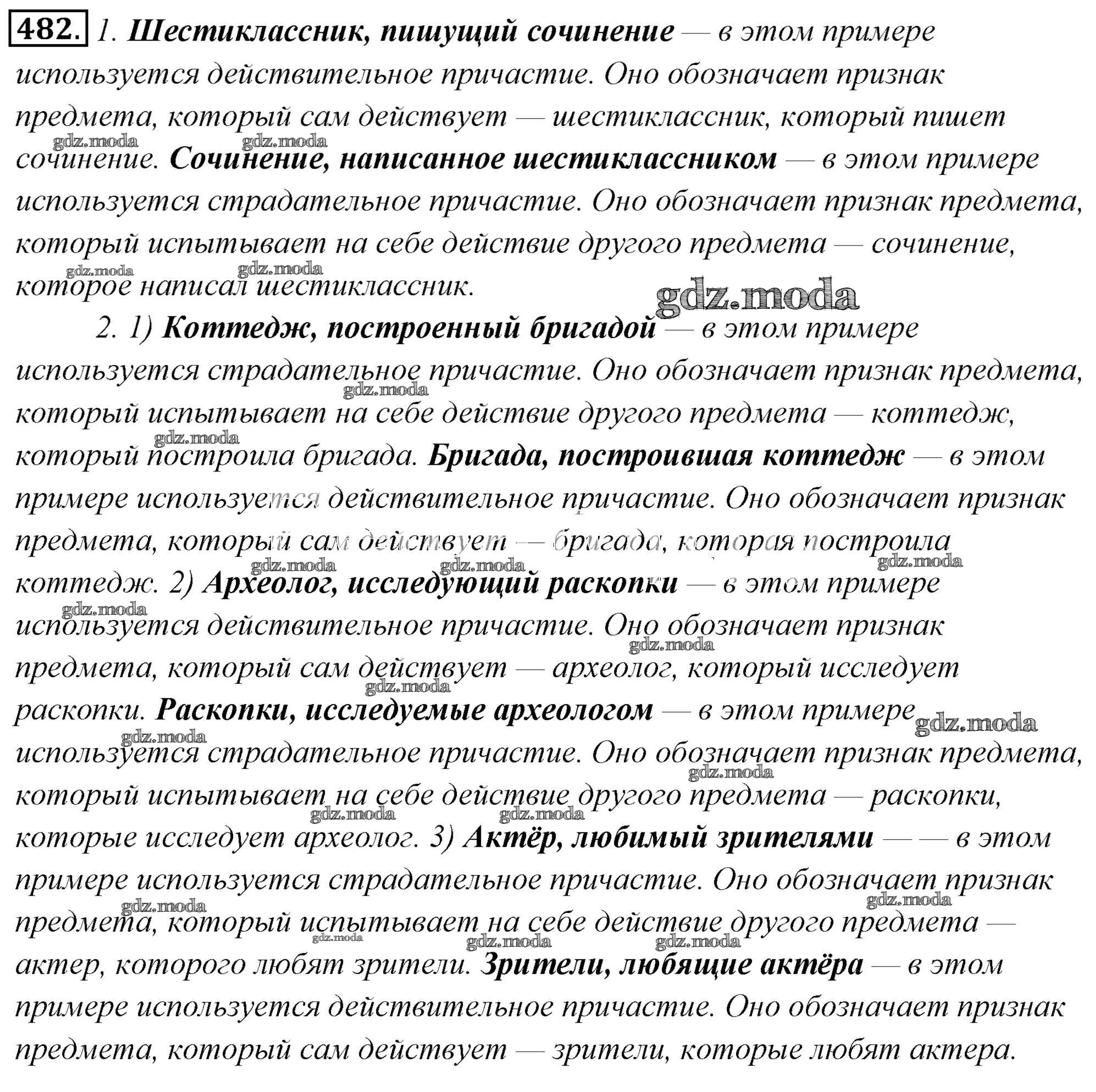 ГДЗ решение к заданию № 482 Русский язык 6 класс Львов Мнемозина 2013 Часть 1, Часть 2 ФГОС бесплатно на гдз.мода!