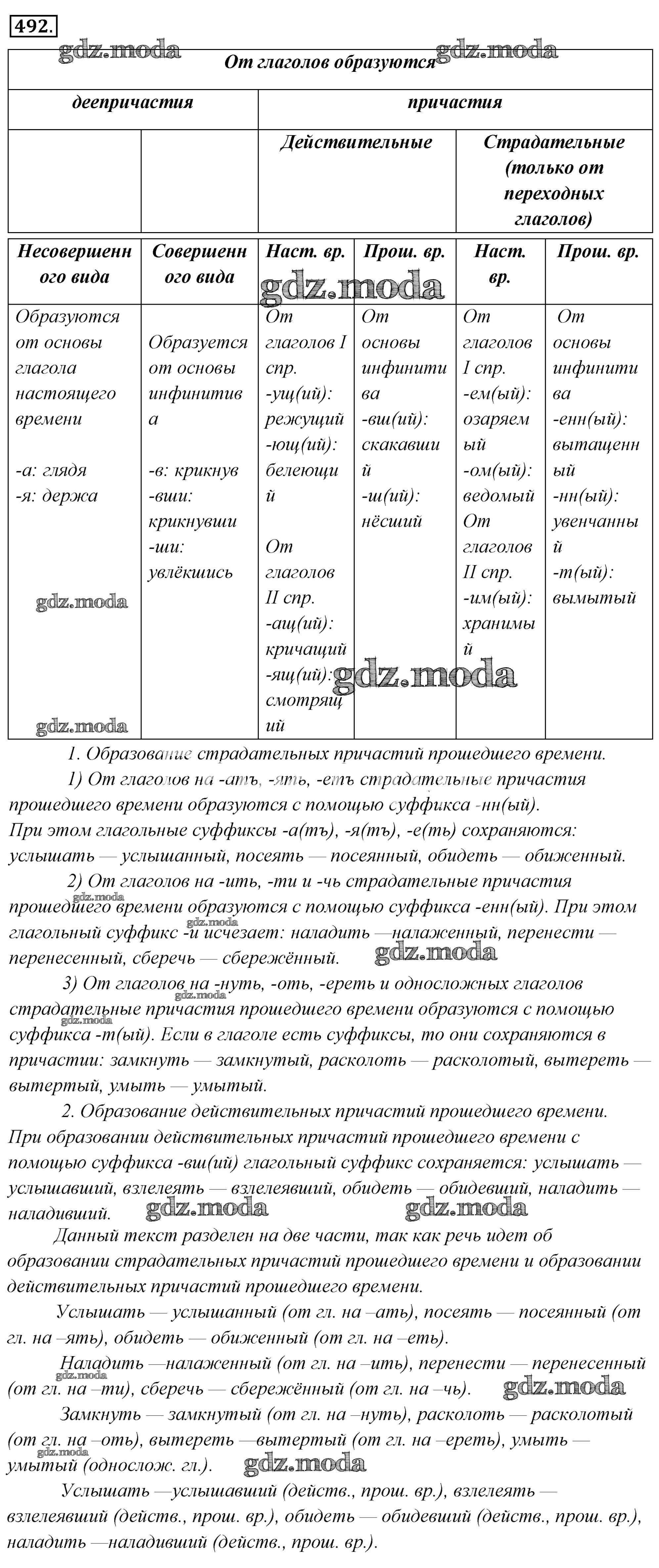 ГДЗ решение к заданию № 492 Русский язык 6 класс Львов Мнемозина 2013 Часть 1, Часть 2 ФГОС бесплатно на гдз.мода!