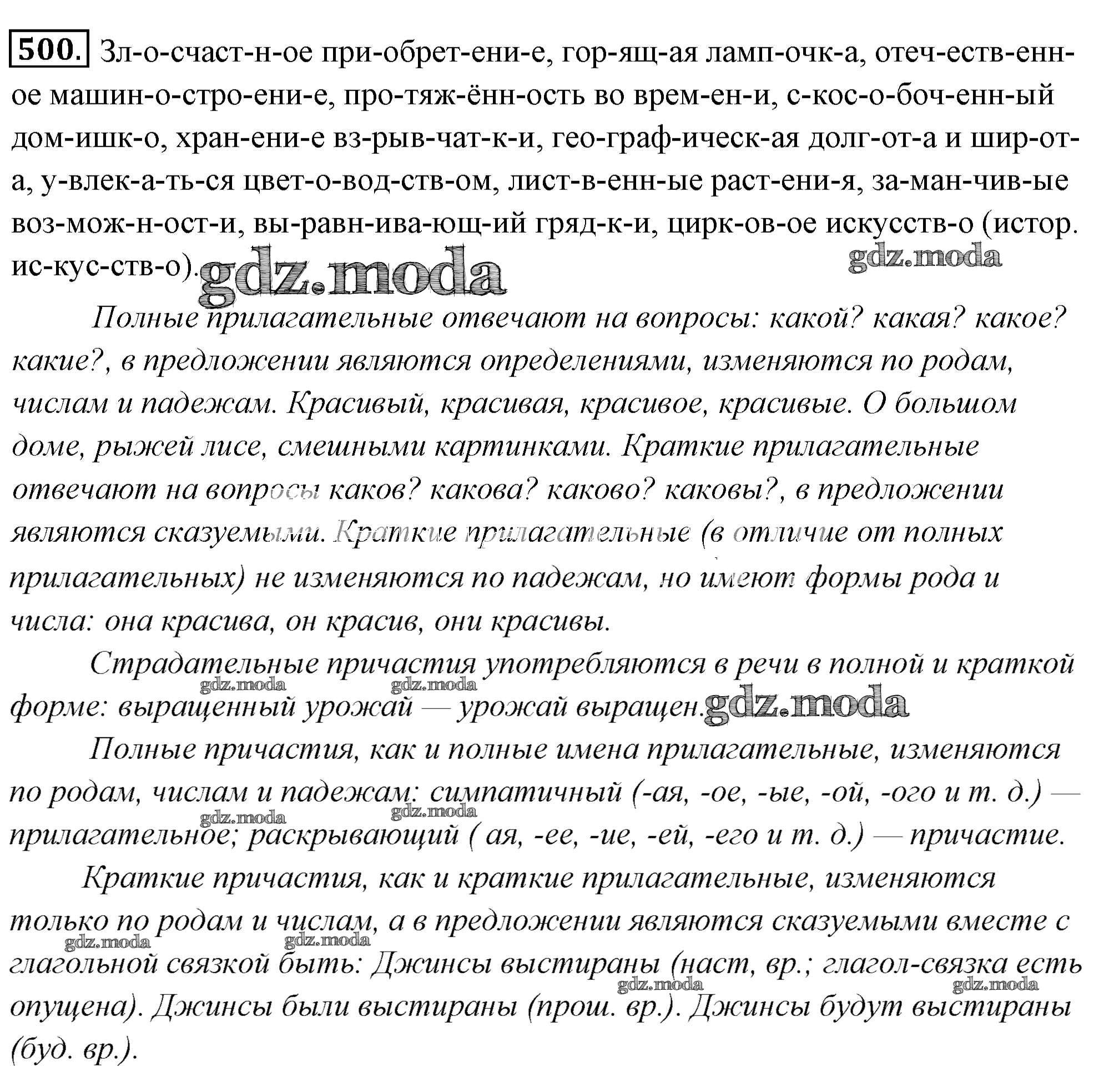ОТВЕТ на задание № 500 Учебник по Русскому языку 6 класс Львова