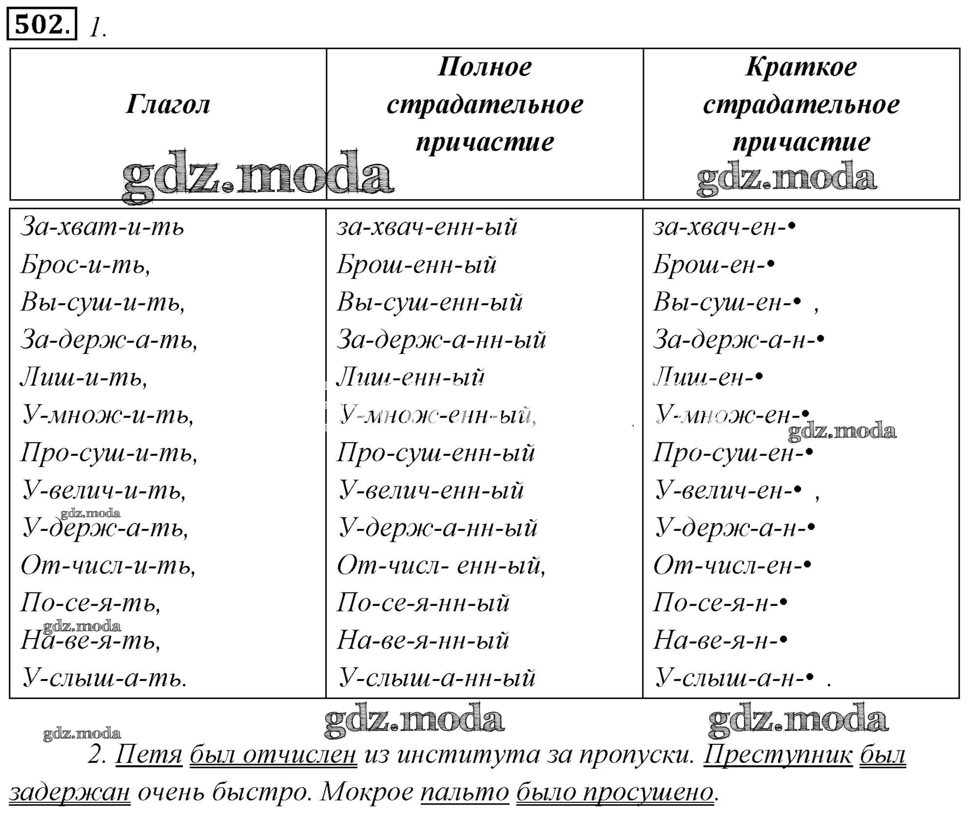 ОТВЕТ на задание № 502 Учебник по Русскому языку 6 класс Львова