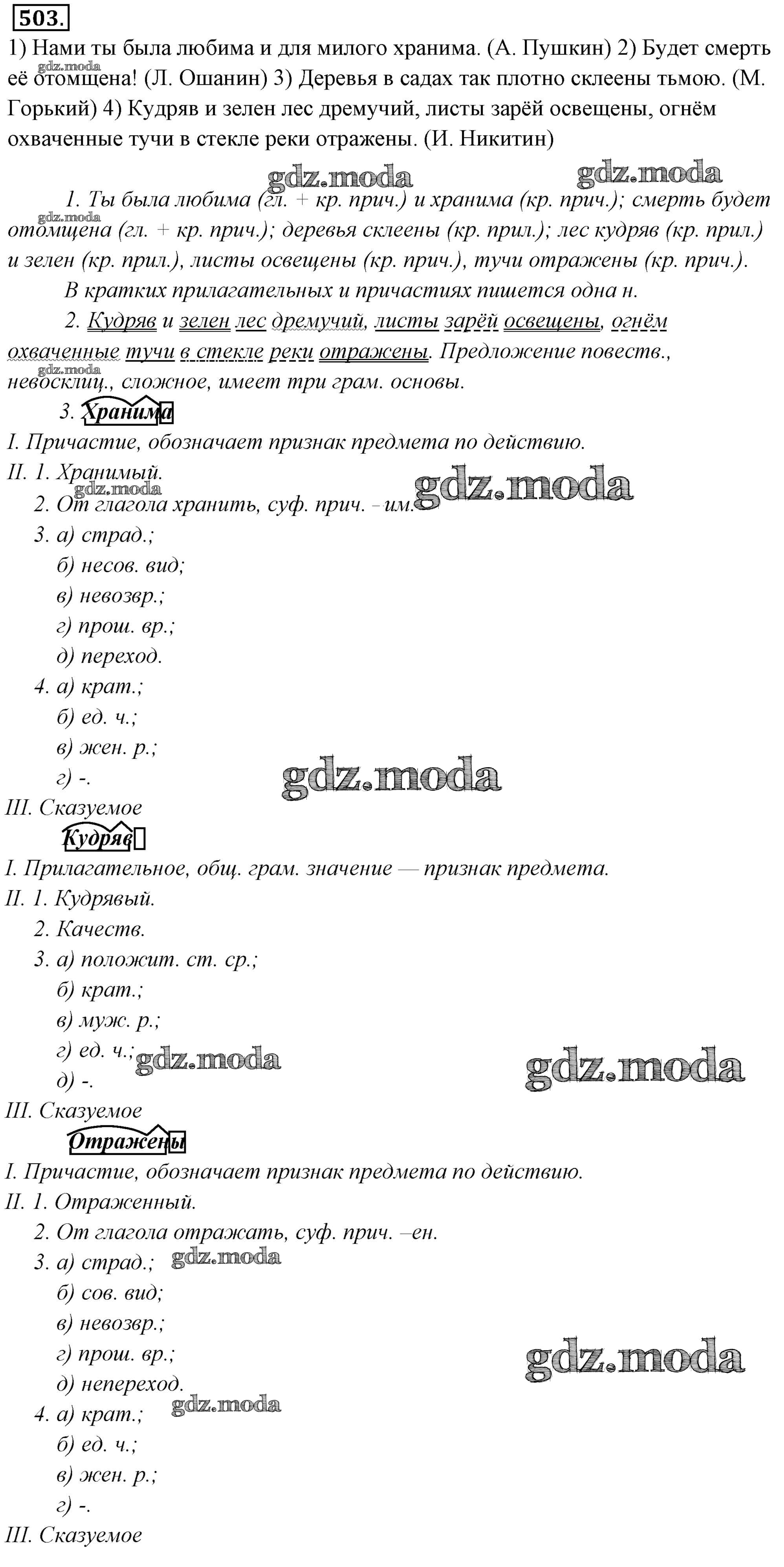 ОТВЕТ на задание № 503 Учебник по Русскому языку 6 класс Львова