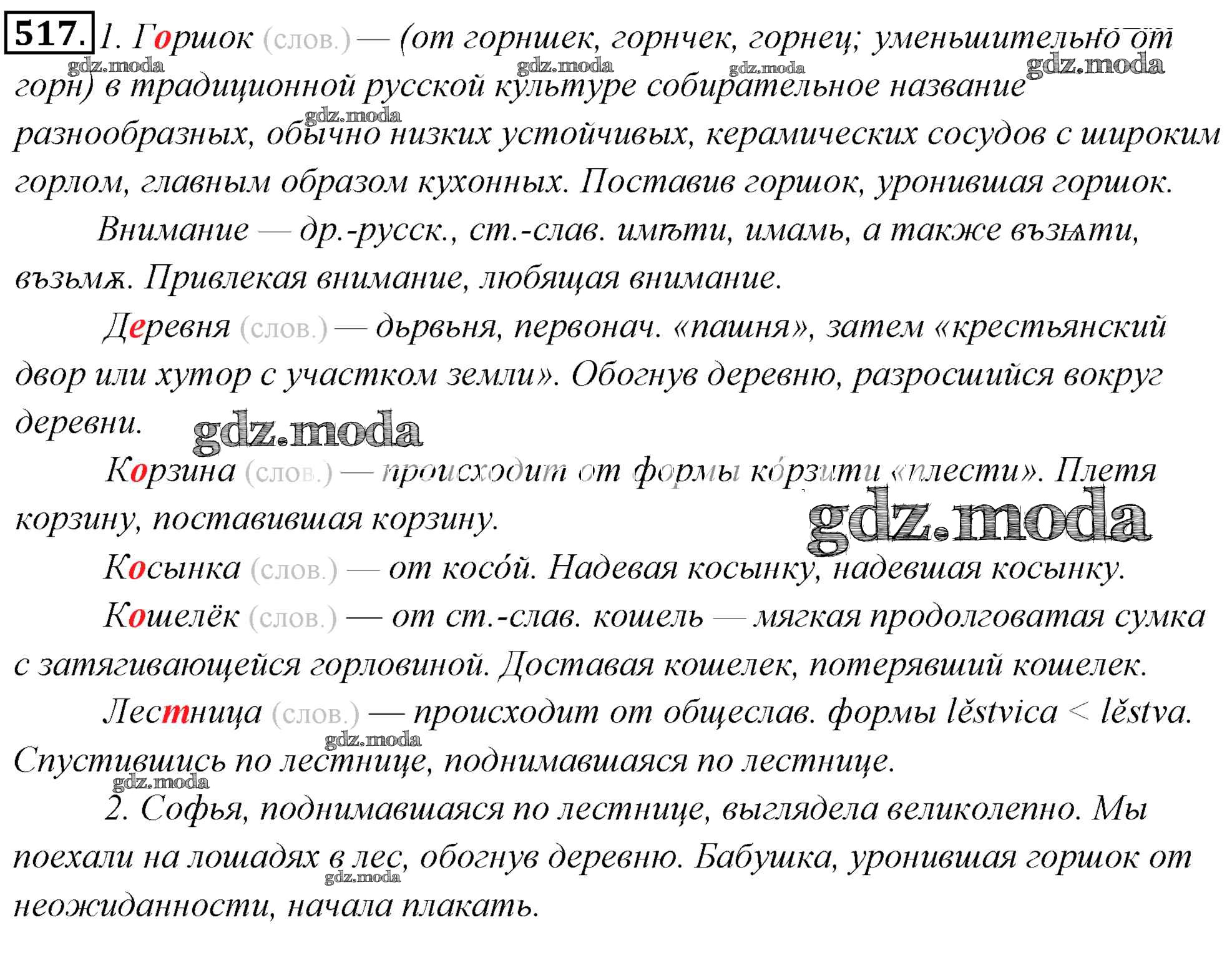 ГДЗ решение к заданию № 517 Русский язык 6 класс Львов Мнемозина 2013 Часть 1, Часть 2 ФГОС бесплатно на гдз.мода!