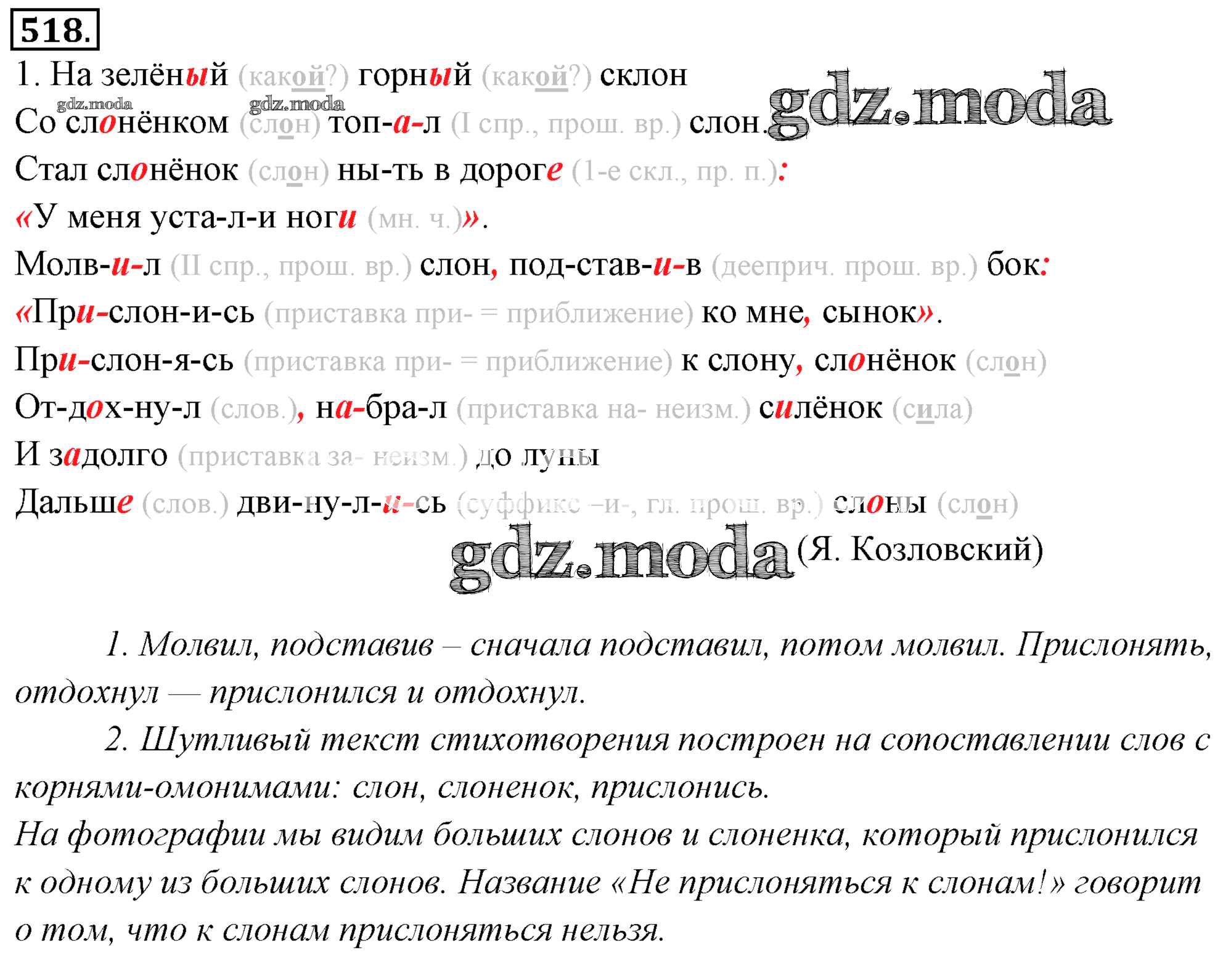ОТВЕТ на задание № 518 Учебник по Русскому языку 6 класс Львова