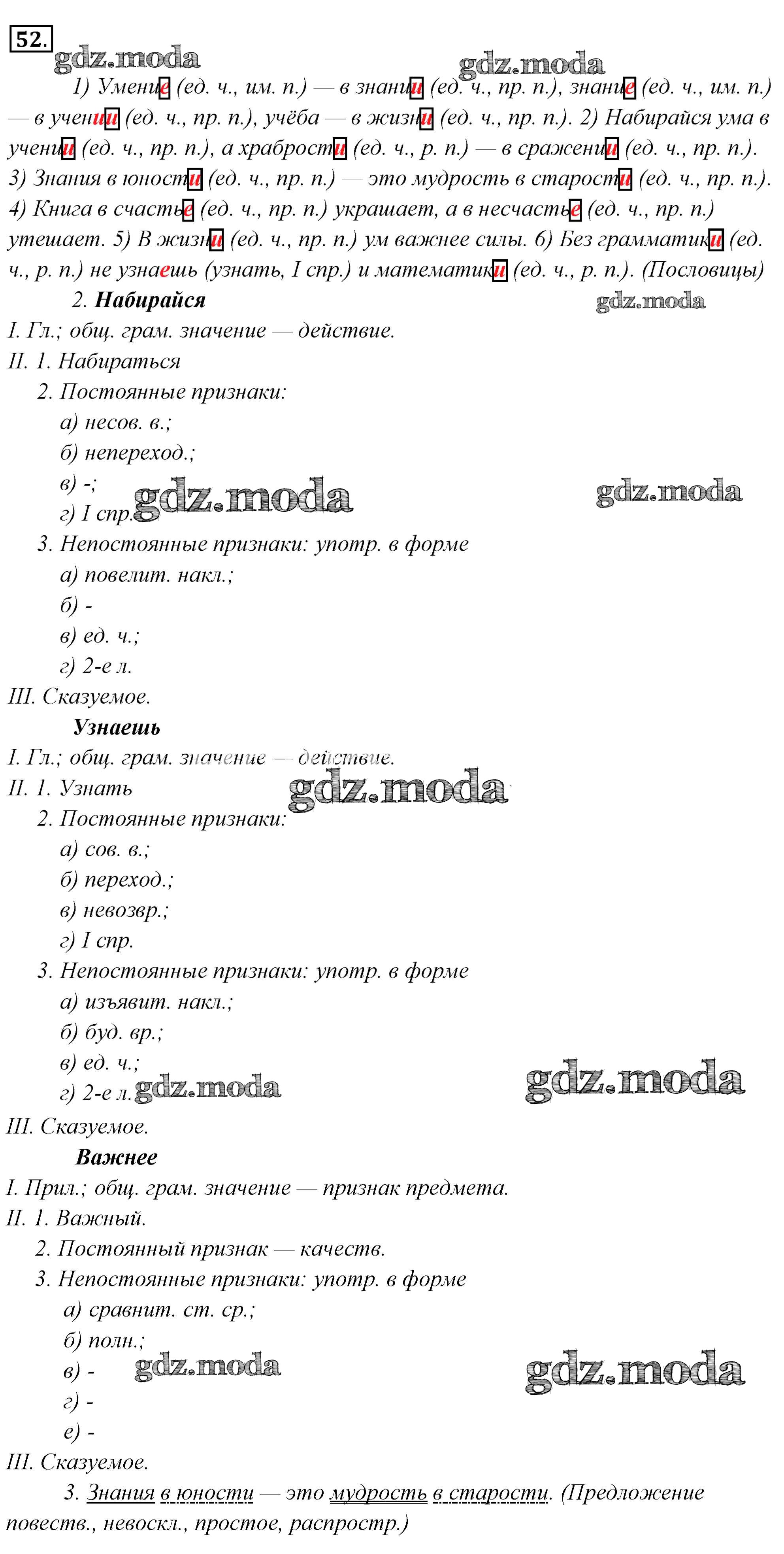ГДЗ решение к заданию № 52 Русский язык 6 класс Львов Мнемозина 2013 Часть 1, Часть 2 ФГОС бесплатно на гдз.мода!
