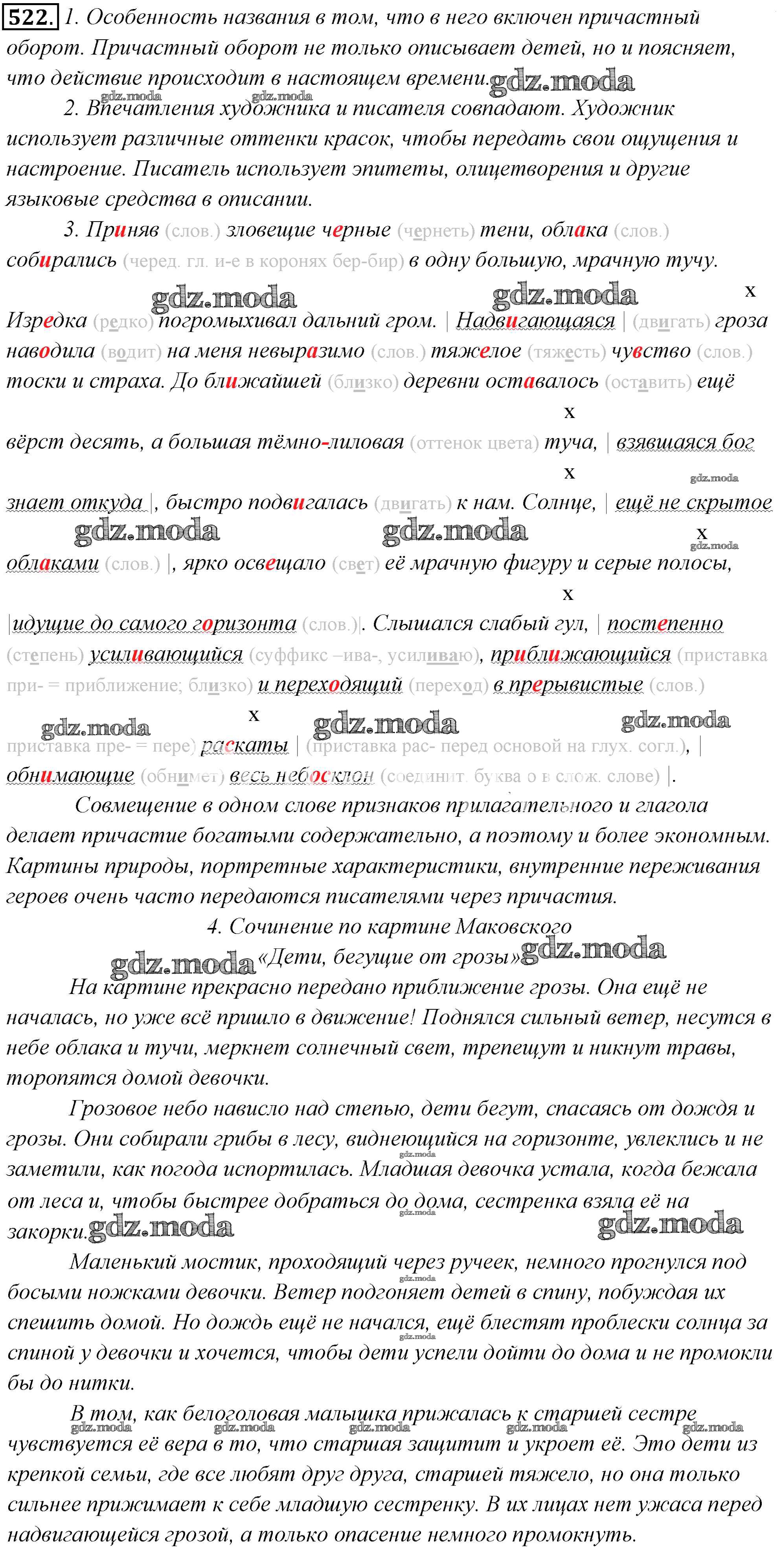 ОТВЕТ на задание № 522 Учебник по Русскому языку 6 класс Львова