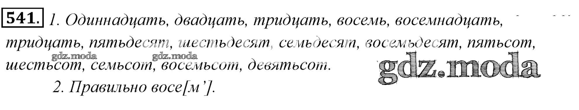 ОТВЕТ на задание № 541 Учебник по Русскому языку 6 класс Львова