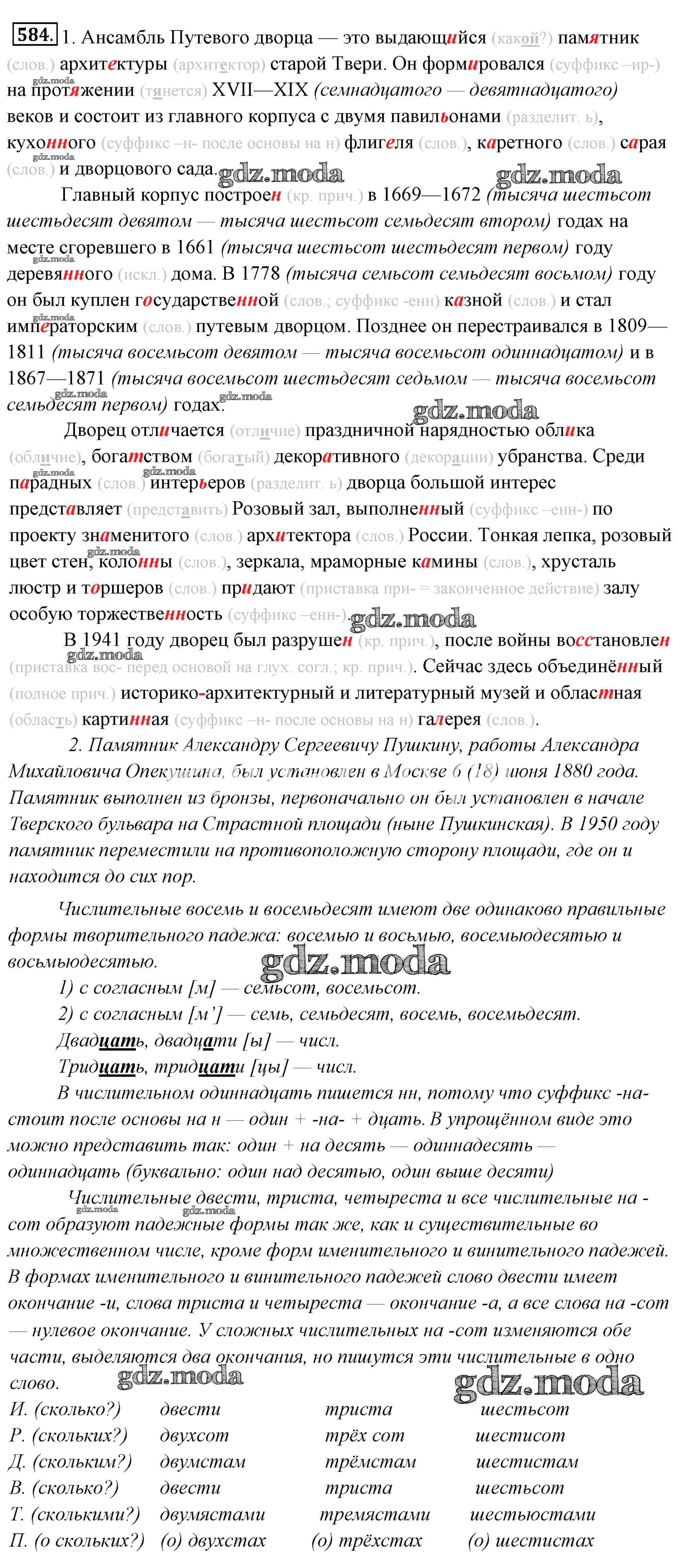 ГДЗ решение к заданию № 584 Русский язык 6 класс Львов Мнемозина 2013 Часть 1, Часть 2 ФГОС бесплатно на гдз.мода!