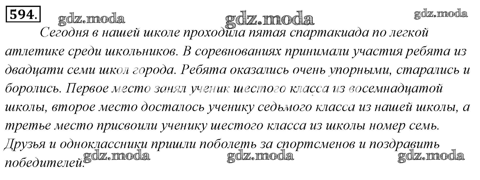 ГДЗ решение к заданию № 594 Русский язык 6 класс Львов Мнемозина 2013 Часть 1, Часть 2 ФГОС бесплатно на гдз.мода!