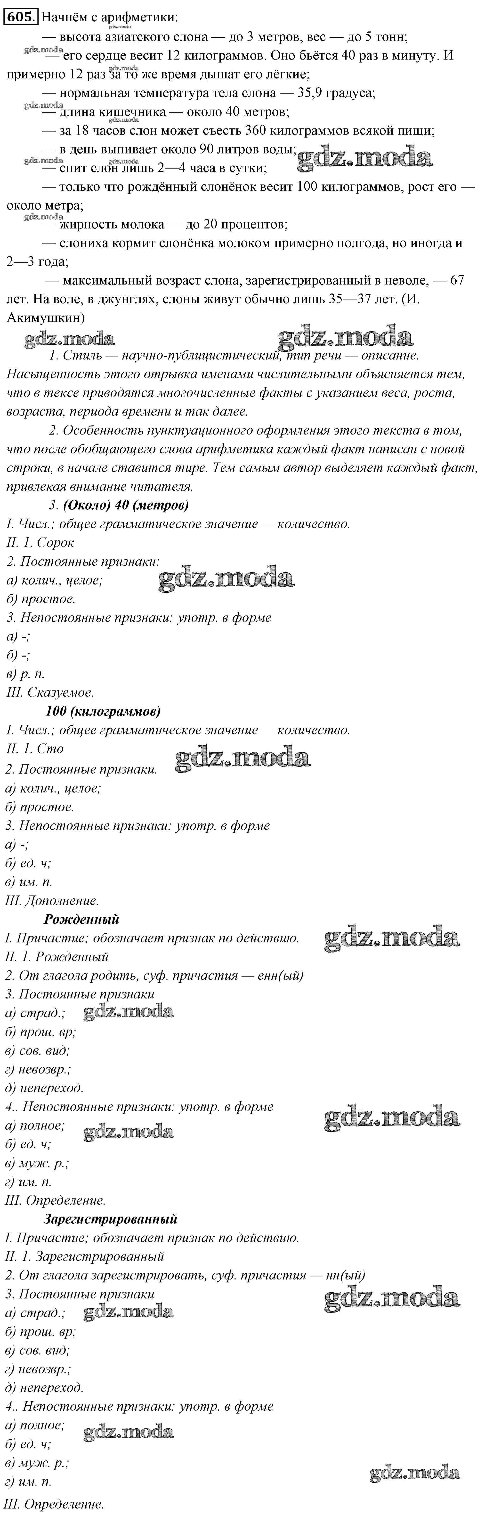 ГДЗ решение к заданию № 605 Русский язык 6 класс Львов Мнемозина 2013 Часть 1, Часть 2 ФГОС бесплатно на гдз.мода!