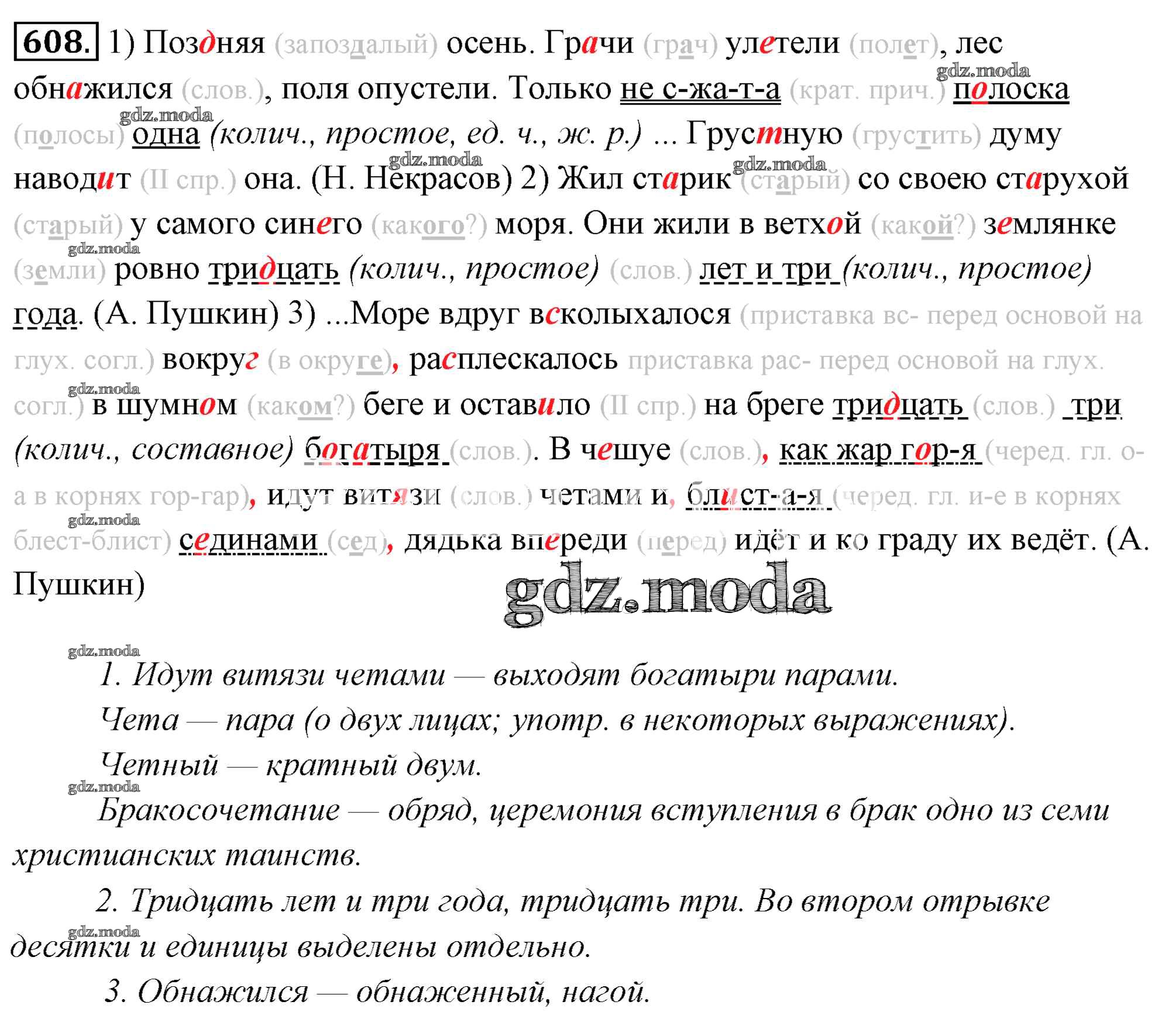 ОТВЕТ на задание № 608 Учебник по Русскому языку 6 класс Львова