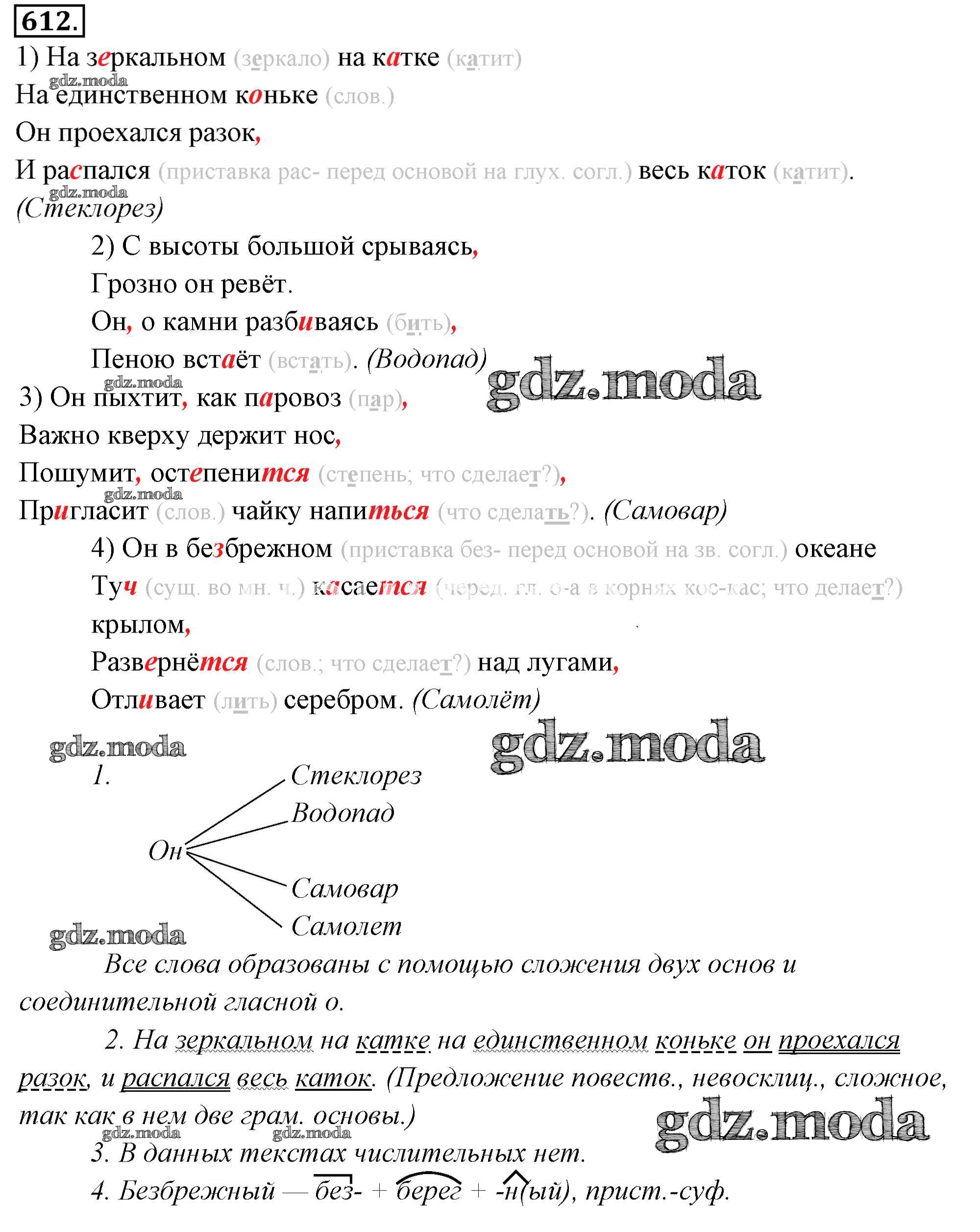 ОТВЕТ на задание № 612 Учебник по Русскому языку 6 класс Львова