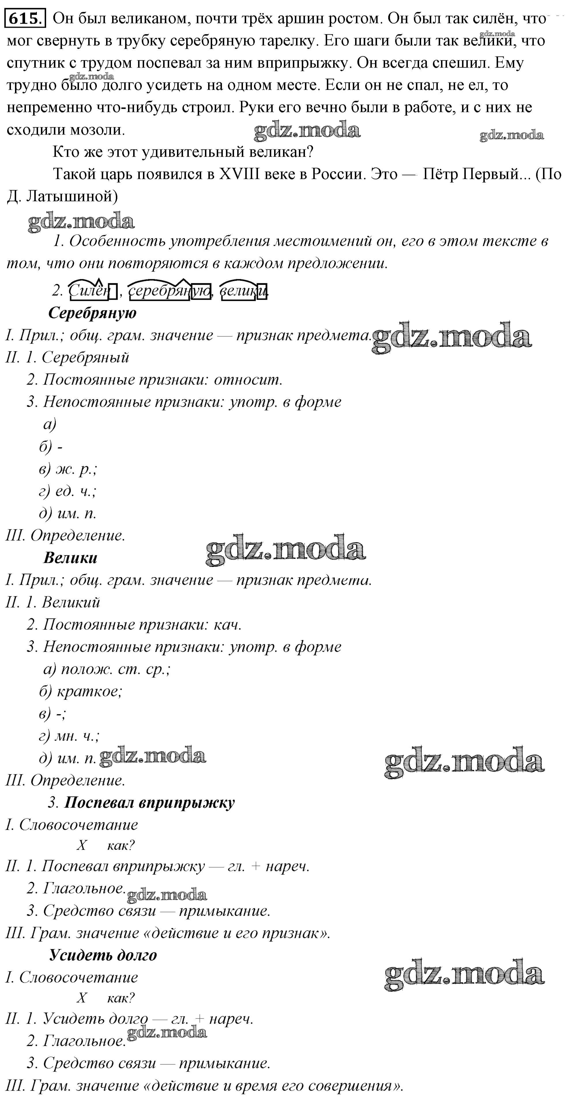 ГДЗ решение к заданию № 615 Русский язык 6 класс Львов Мнемозина 2013 Часть 1, Часть 2 ФГОС бесплатно на гдз.мода!