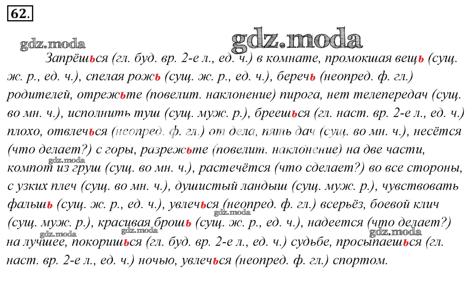 ГДЗ решение к заданию № 62 Русский язык 6 класс Львов Мнемозина 2013 Часть 1, Часть 2 ФГОС бесплатно на гдз.мода!