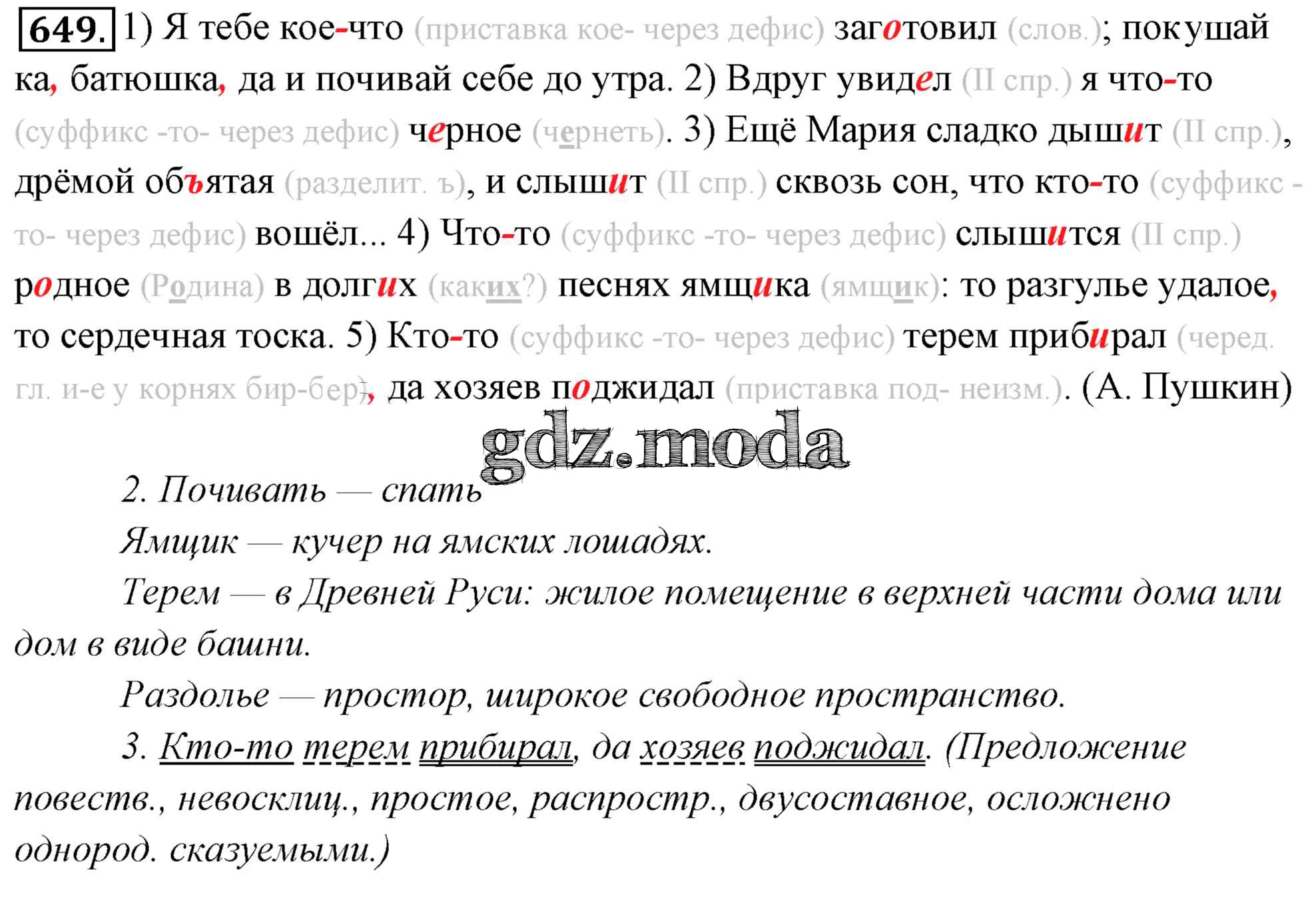 ОТВЕТ на задание № 649 Учебник по Русскому языку 6 класс Львова