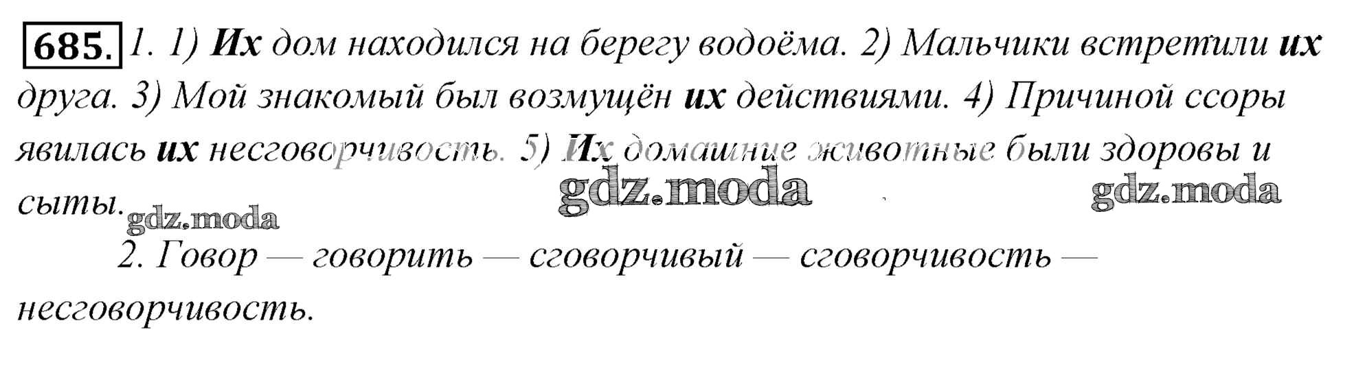 ОТВЕТ на задание № 685 Учебник по Русскому языку 6 класс Львова