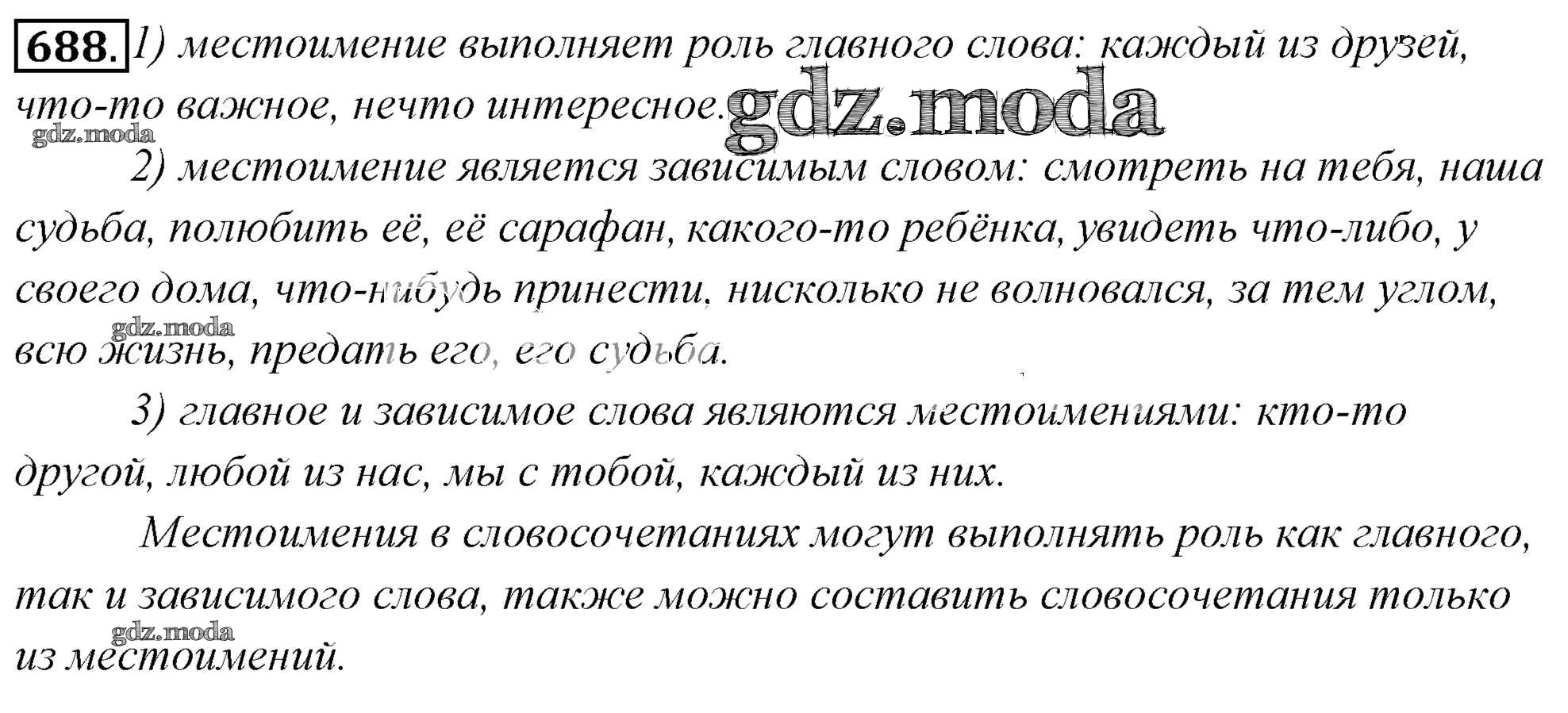 ГДЗ решение к заданию № 688 Русский язык 6 класс Львов Мнемозина 2013 Часть 1, Часть 2 ФГОС бесплатно на гдз.мода!