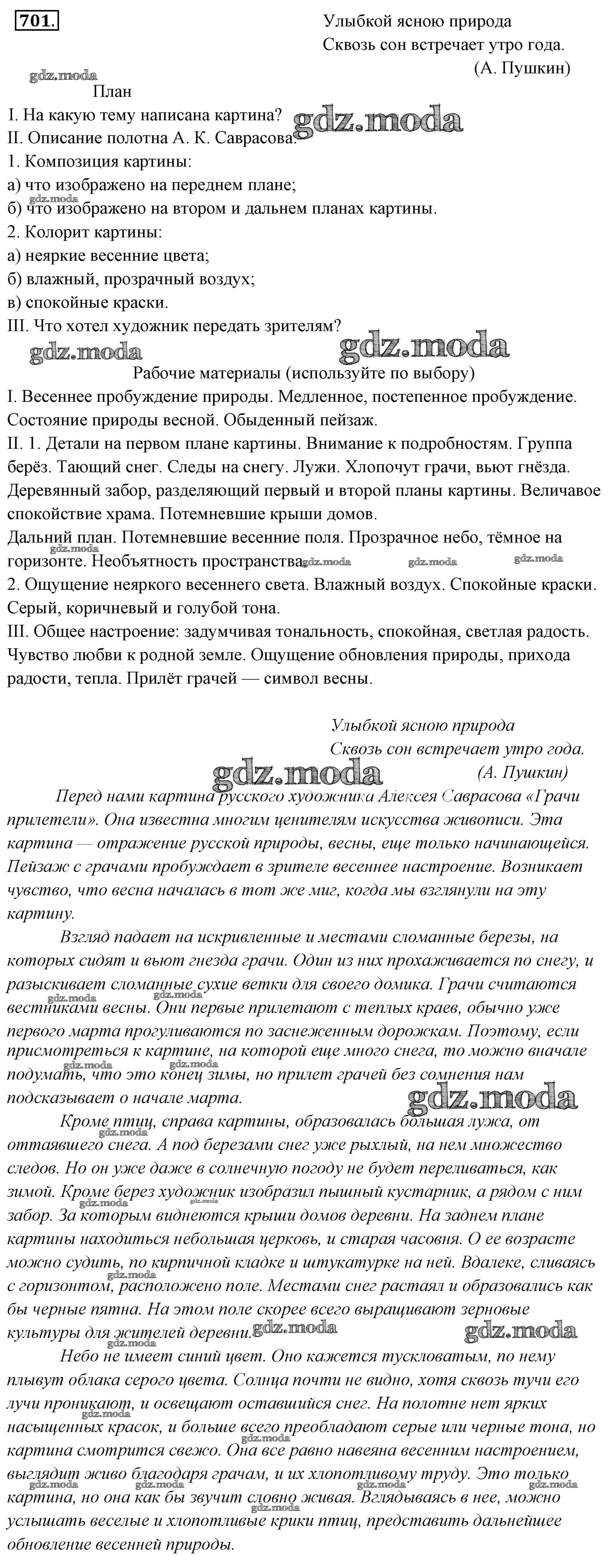 ОТВЕТ на задание № 701 Учебник по Русскому языку 6 класс Львова