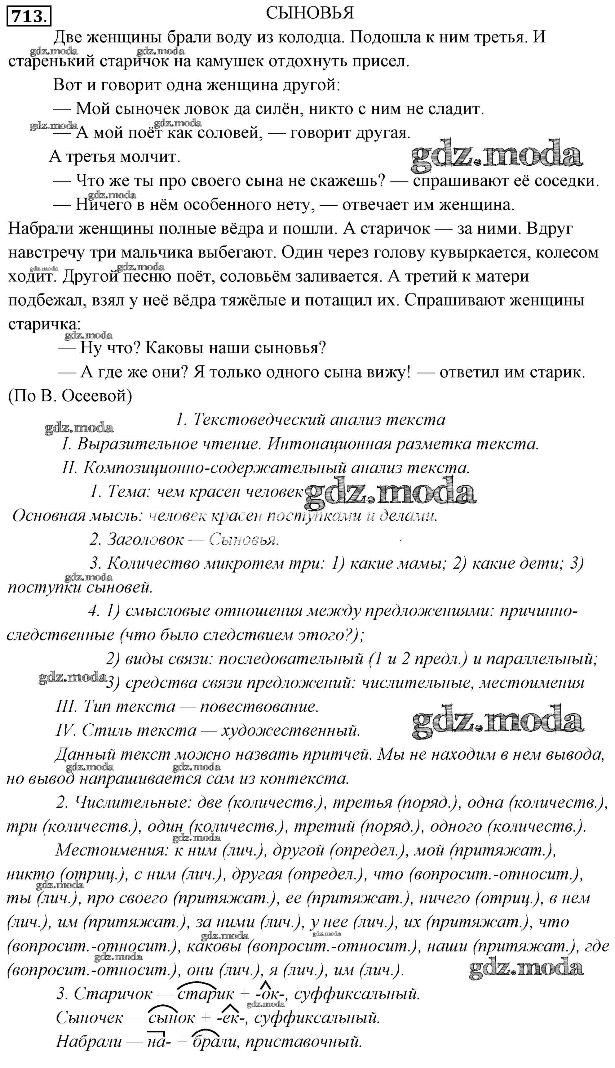 ГДЗ решение к заданию № 713 Русский язык 6 класс Львов Мнемозина 2013 Часть 1, Часть 2 ФГОС бесплатно на гдз.мода!