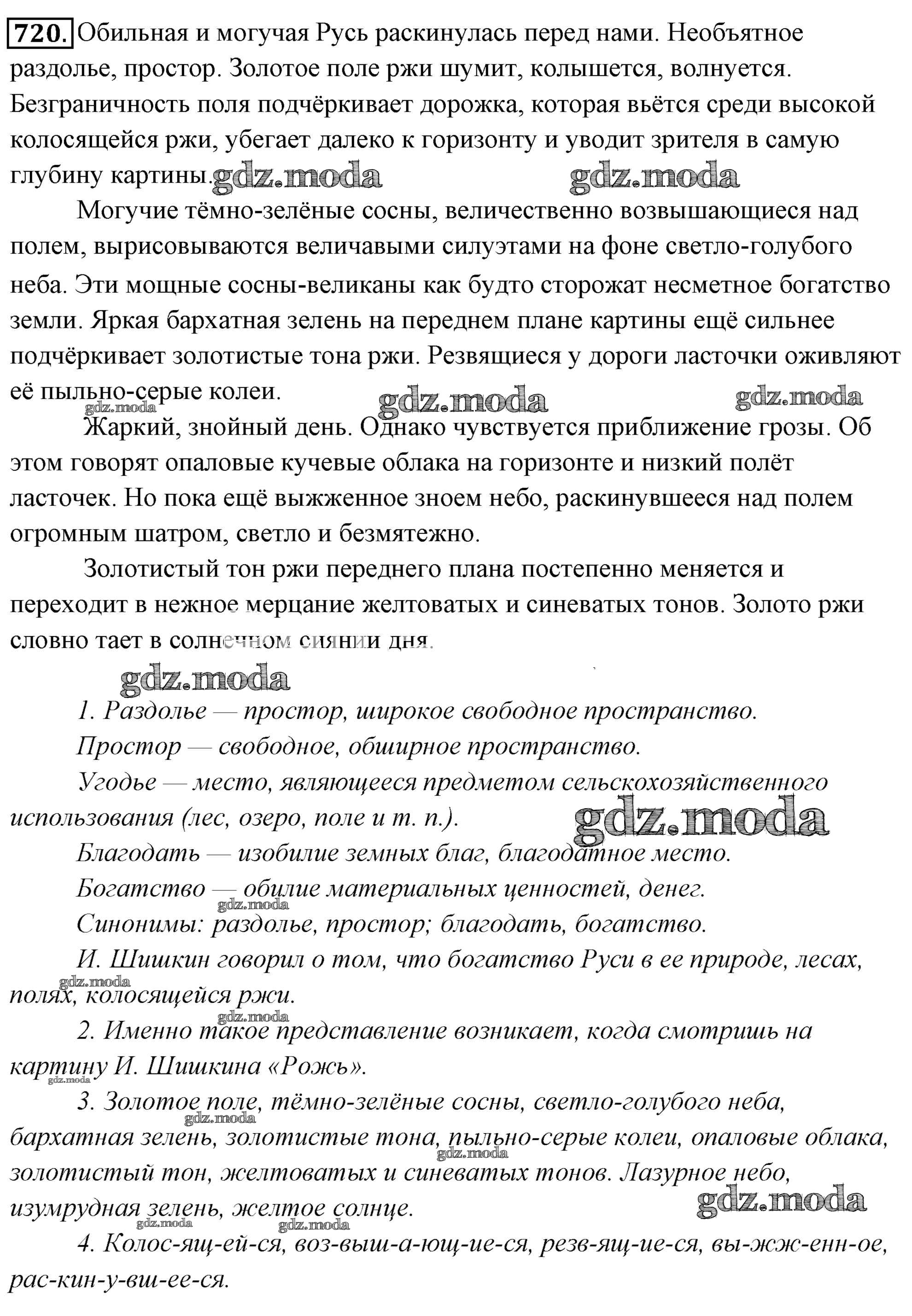 ГДЗ решение к заданию № 720 Русский язык 6 класс Львов Мнемозина 2013 Часть 1, Часть 2 ФГОС бесплатно на гдз.мода!