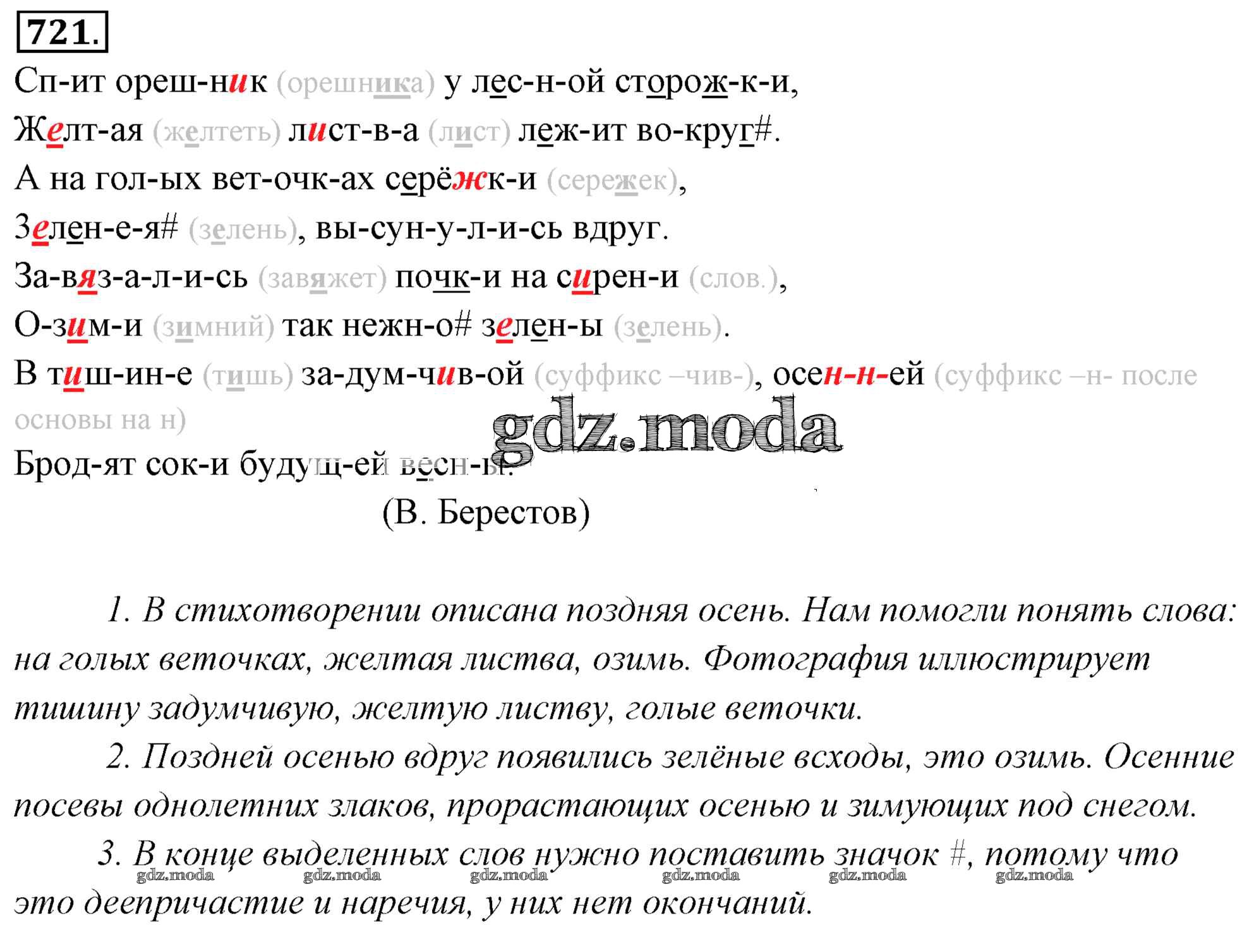 ГДЗ решение к заданию № 721 Русский язык 6 класс Львов Мнемозина 2013 Часть 1, Часть 2 ФГОС бесплатно на гдз.мода!