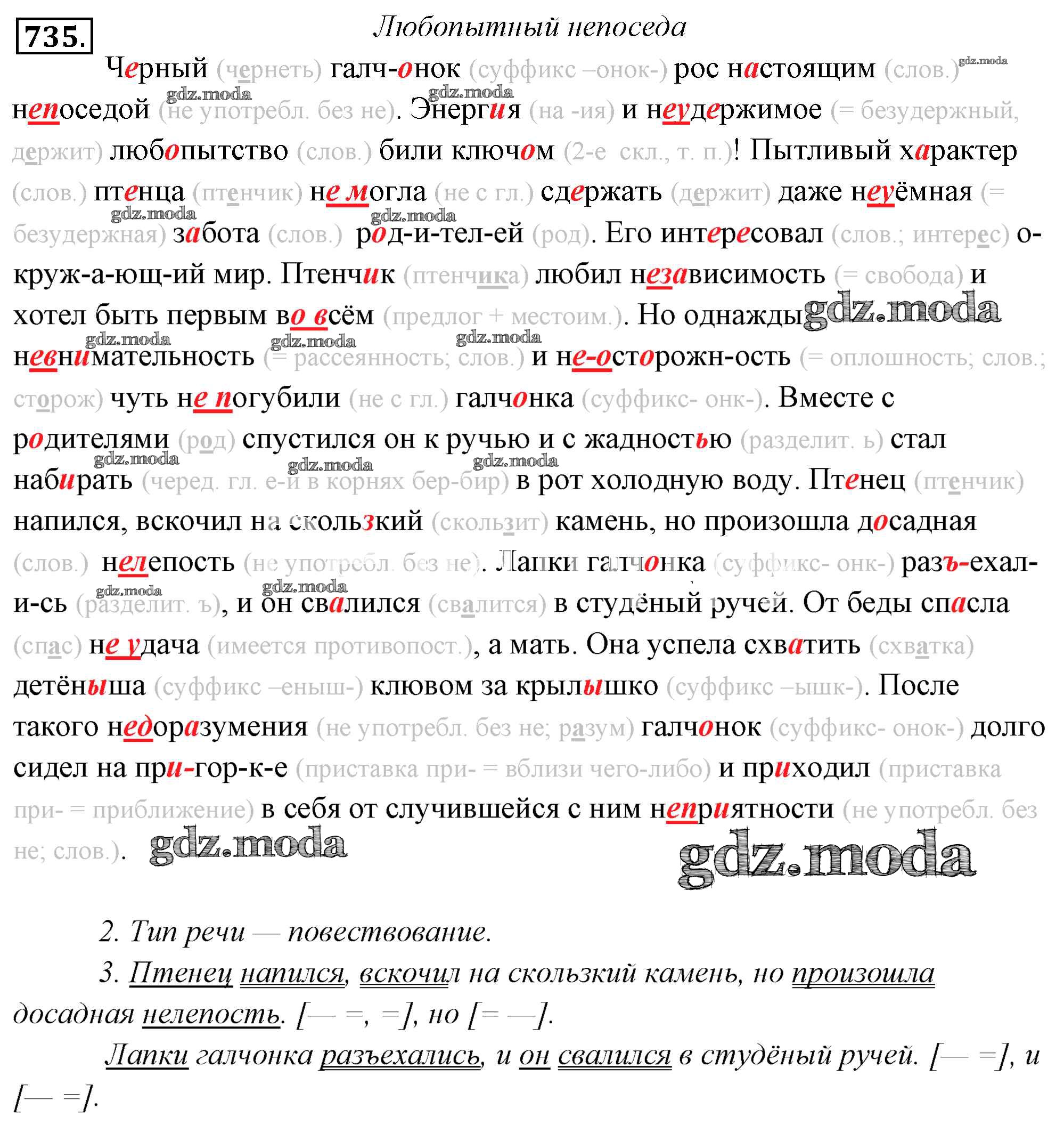 ГДЗ решение к заданию № 735 Русский язык 6 класс Львов Мнемозина 2013 Часть 1, Часть 2 ФГОС бесплатно на гдз.мода!
