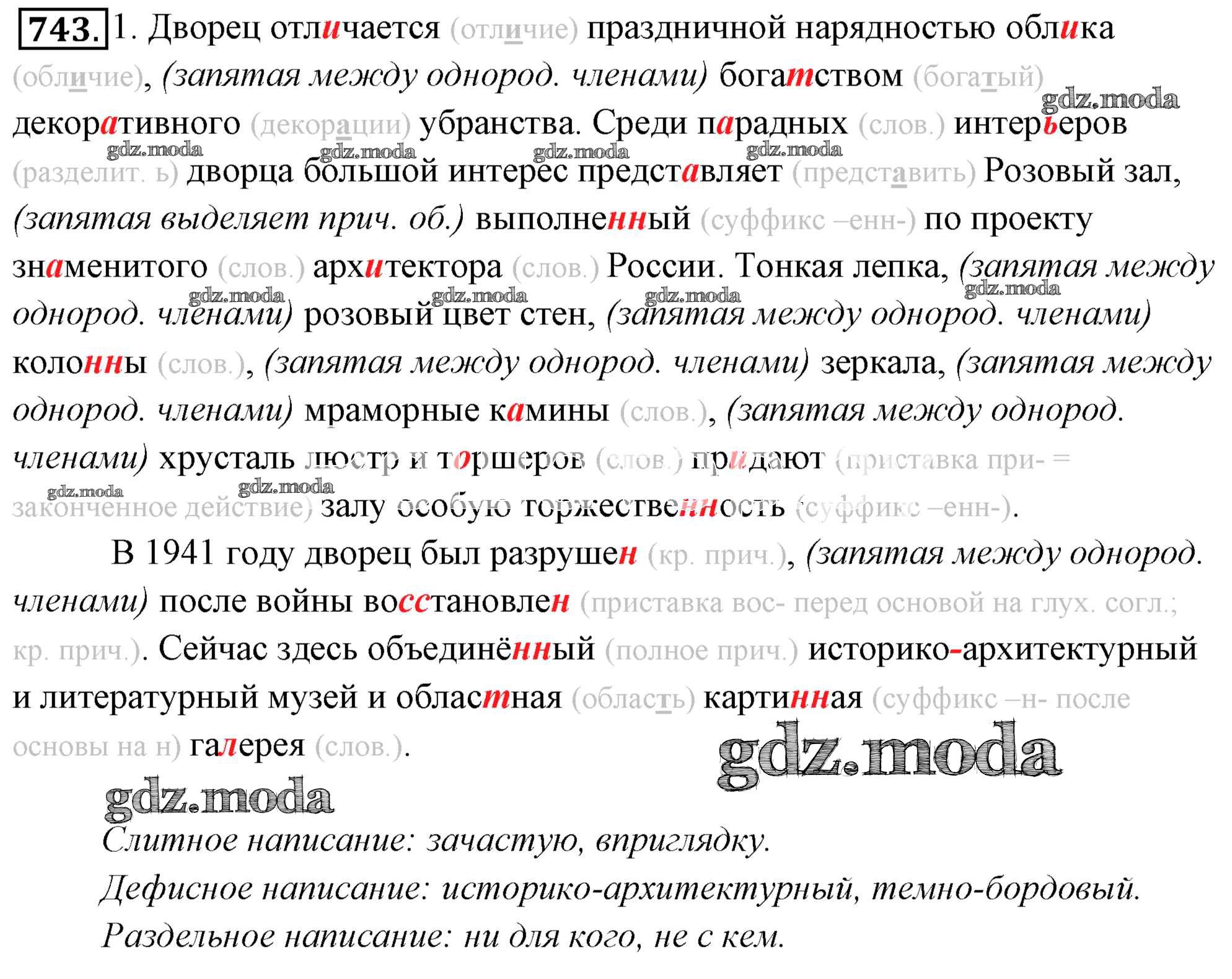 ГДЗ решение к заданию № 743 Русский язык 6 класс Львов Мнемозина 2013 Часть 1, Часть 2 ФГОС бесплатно на гдз.мода!