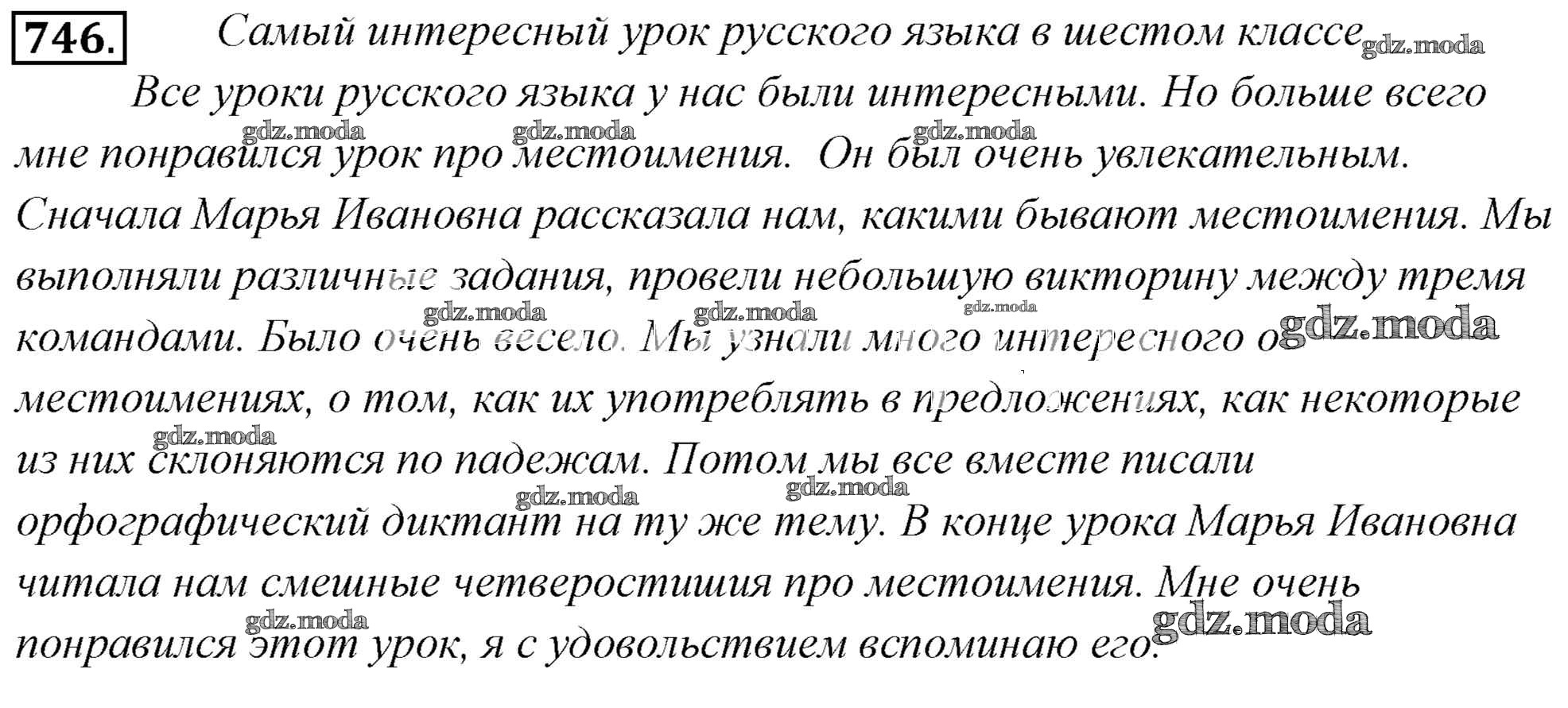 ГДЗ решение к заданию № 746 Русский язык 6 класс Львов Мнемозина 2013 Часть 1, Часть 2 ФГОС бесплатно на гдз.мода!