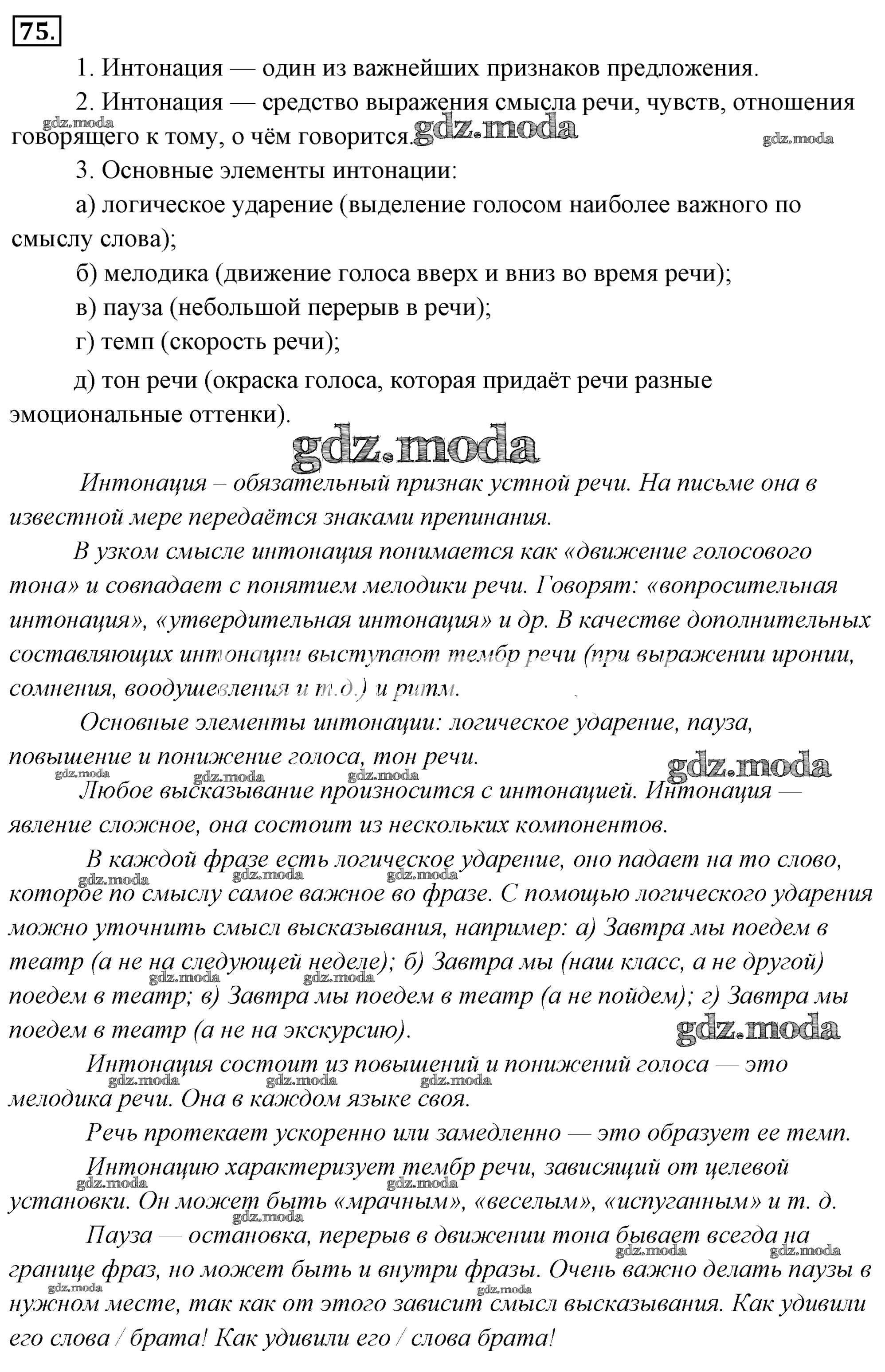 ГДЗ решение к заданию № 75 Русский язык 6 класс Львов Мнемозина 2013 Часть 1, Часть 2 ФГОС бесплатно на гдз.мода!