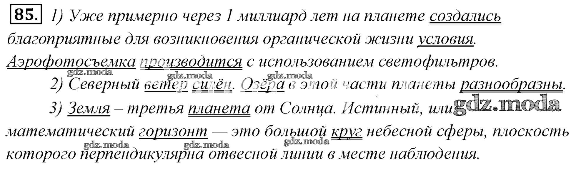 ГДЗ решение к заданию № 85 Русский язык 6 класс Львов Мнемозина 2013 Часть 1, Часть 2 ФГОС бесплатно на гдз.мода!