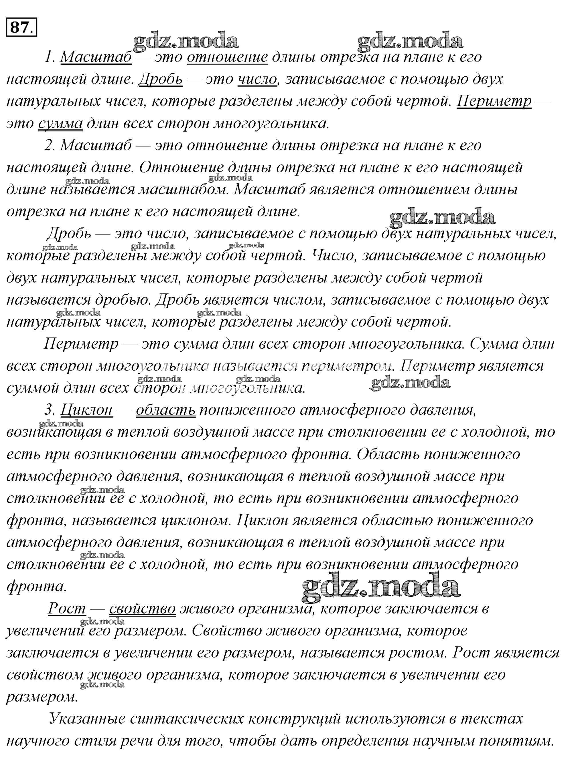 ОТВЕТ на задание № 87 Учебник по Русскому языку 6 класс Львова