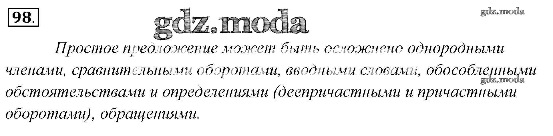 ГДЗ решение к заданию № 98 Русский язык 6 класс Львов Мнемозина 2013 Часть 1, Часть 2 ФГОС бесплатно на гдз.мода!