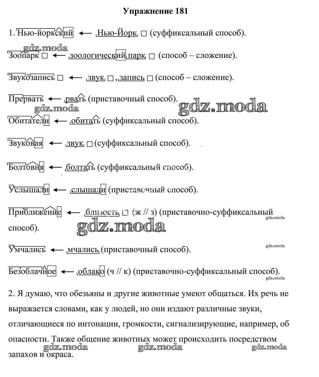 ОТВЕТ на задание № 181 Учебник по Русскому языку 6 класс Мурина
