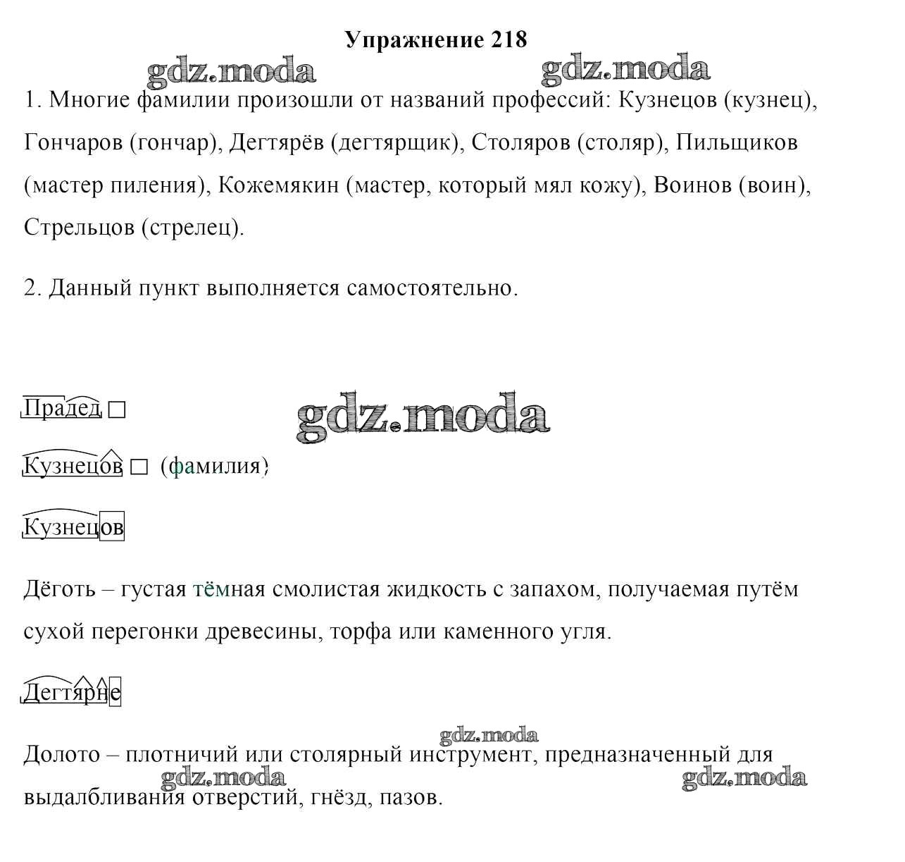 ГДЗ решение к заданию № 218 Русский язык 6 класс Мурина Л.A Национальный институт образования 2020 Часть ФГОС бесплатно на гдз.мода!