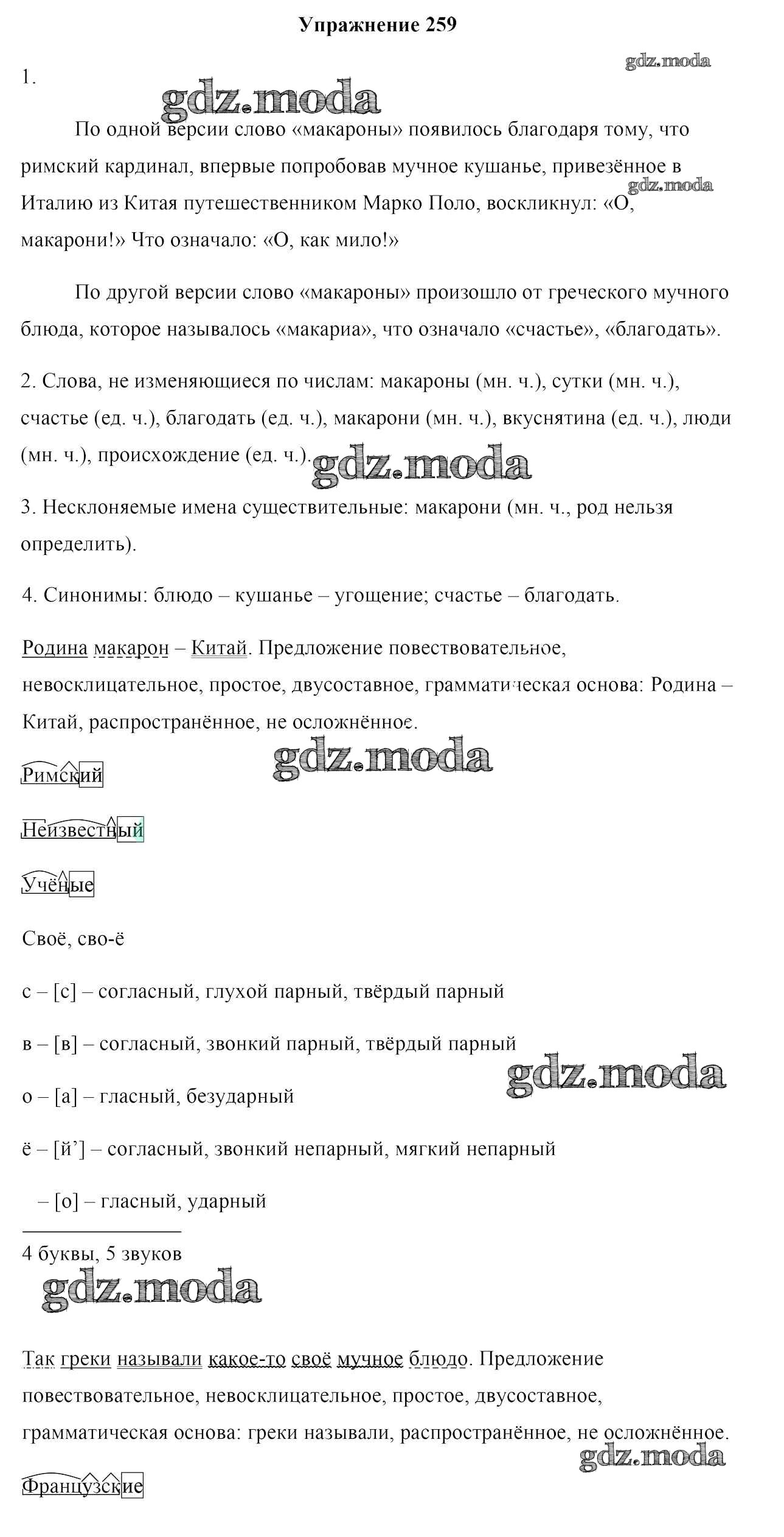 ОТВЕТ на задание № 259 Учебник по Русскому языку 6 класс Мурина