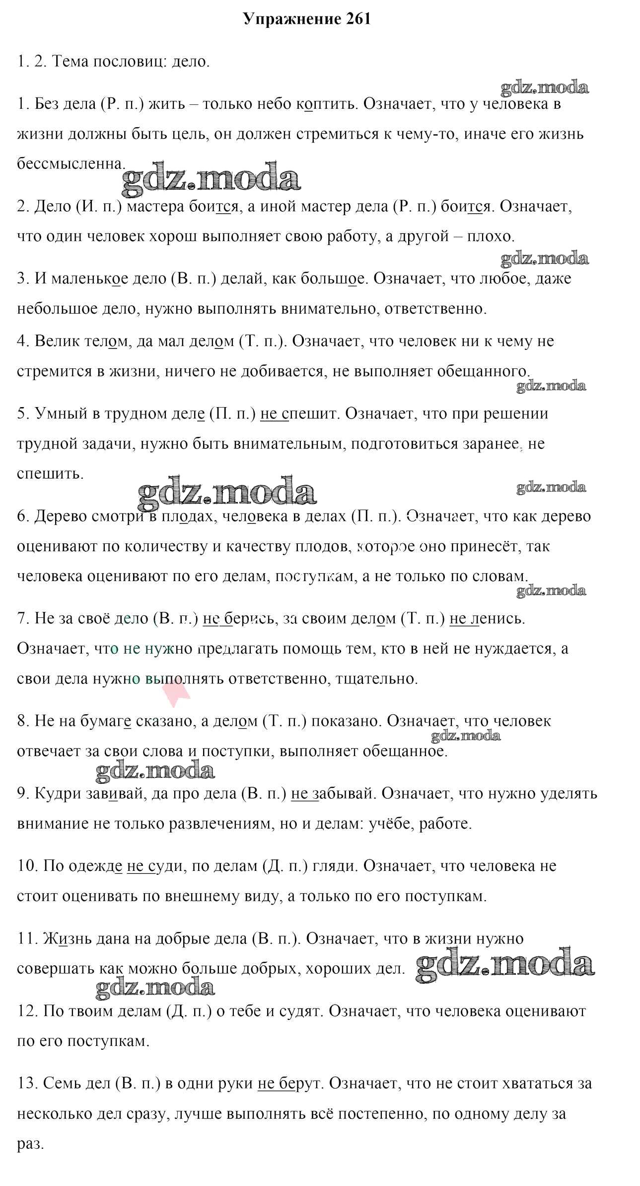 ОТВЕТ на задание № 261 Учебник по Русскому языку 6 класс Мурина
