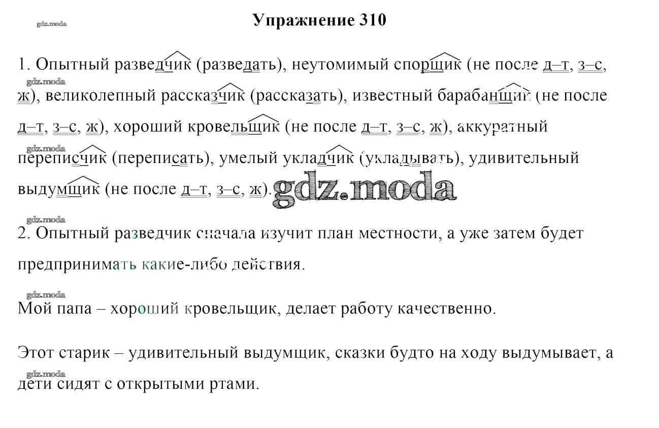 ОТВЕТ на задание № 310 Учебник по Русскому языку 6 класс Мурина