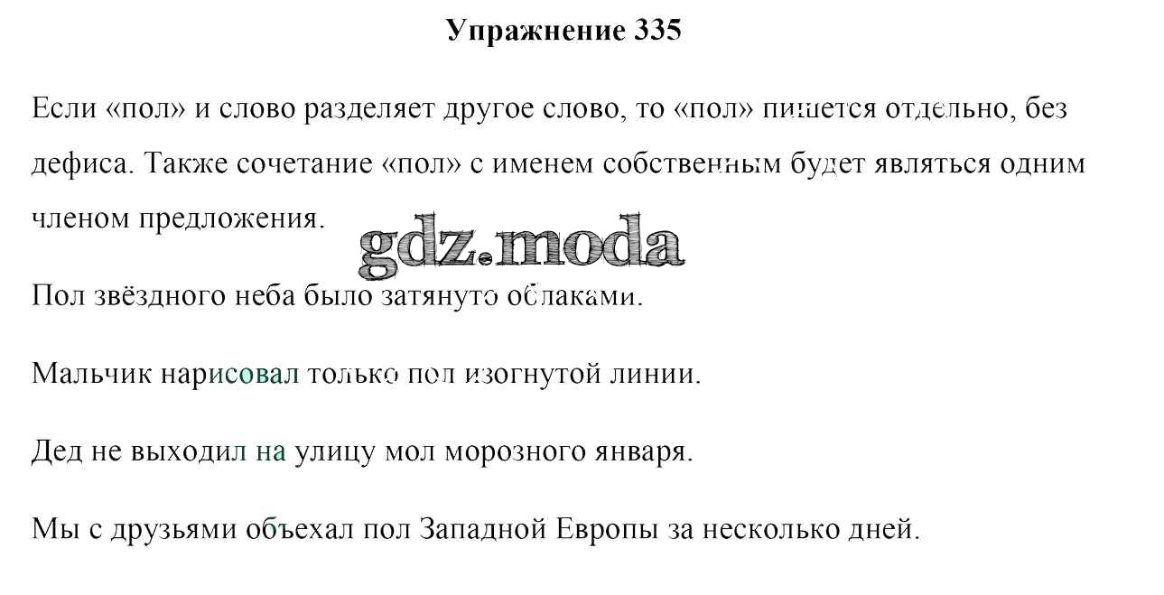 ОТВЕТ на задание № 335 Учебник по Русскому языку 6 класс Мурина