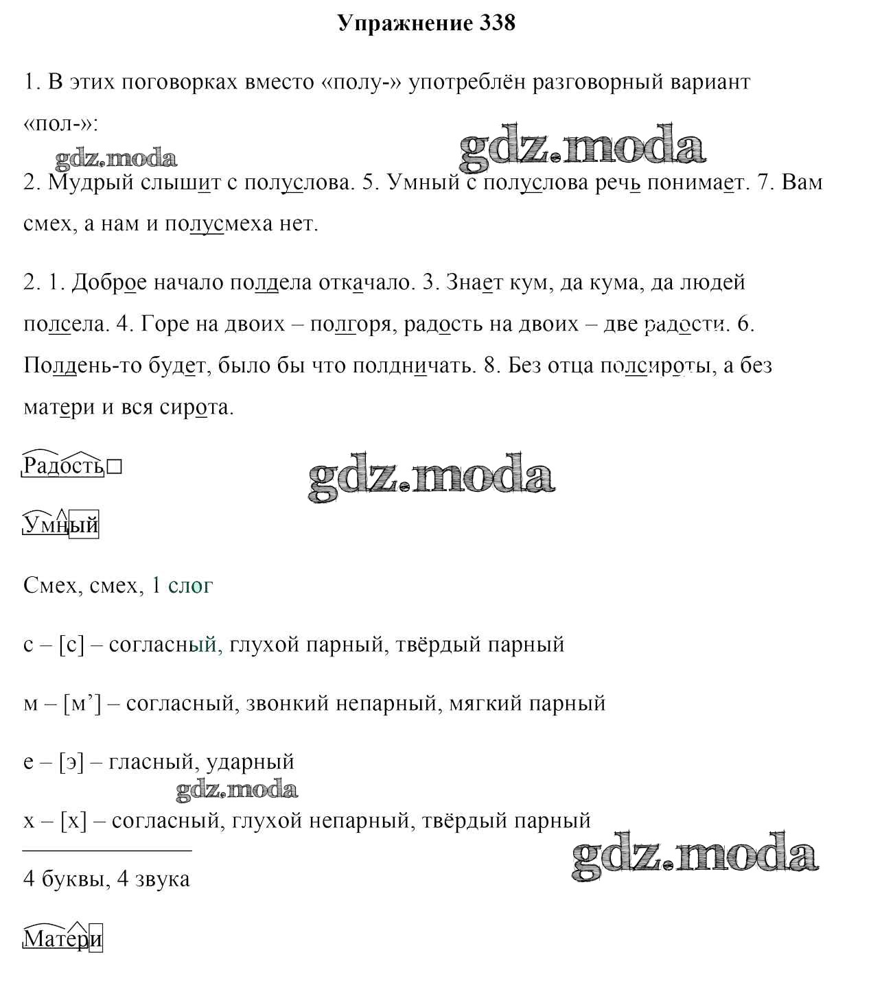 ОТВЕТ на задание № 338 Учебник по Русскому языку 6 класс Мурина