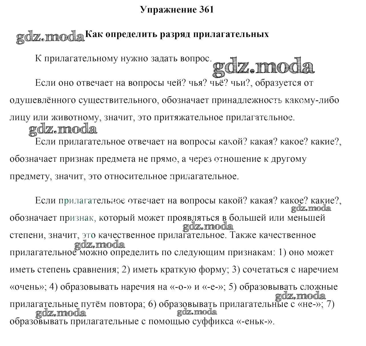 ОТВЕТ на задание № 361 Учебник по Русскому языку 6 класс Мурина