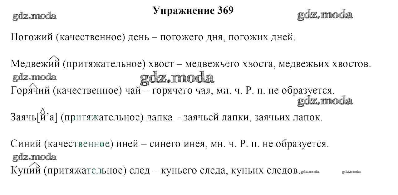 ОТВЕТ на задание № 369 Учебник по Русскому языку 6 класс Мурина