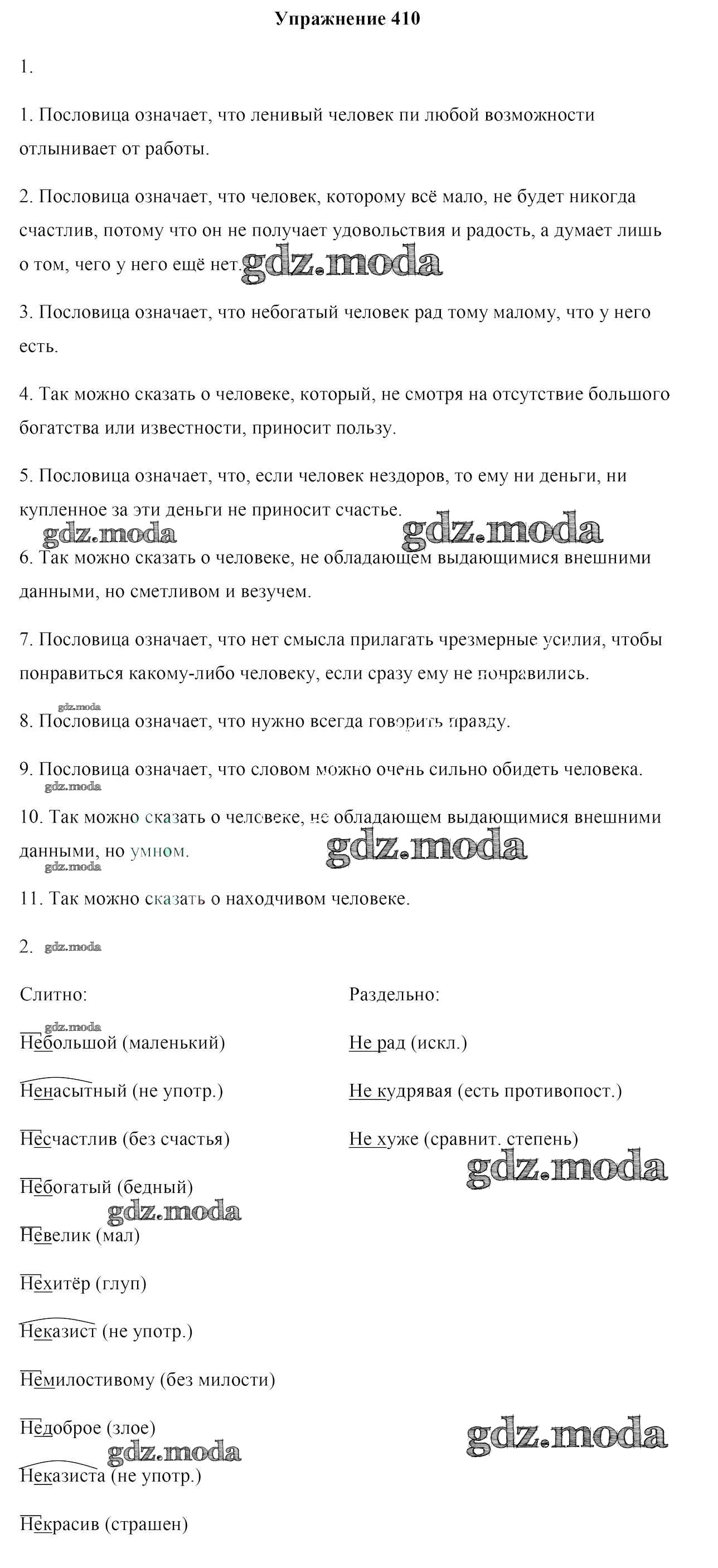 ГДЗ решение к заданию № 410 Русский язык 6 класс Мурина Л.A Национальный институт образования 2020 Часть ФГОС бесплатно на гдз.мода!