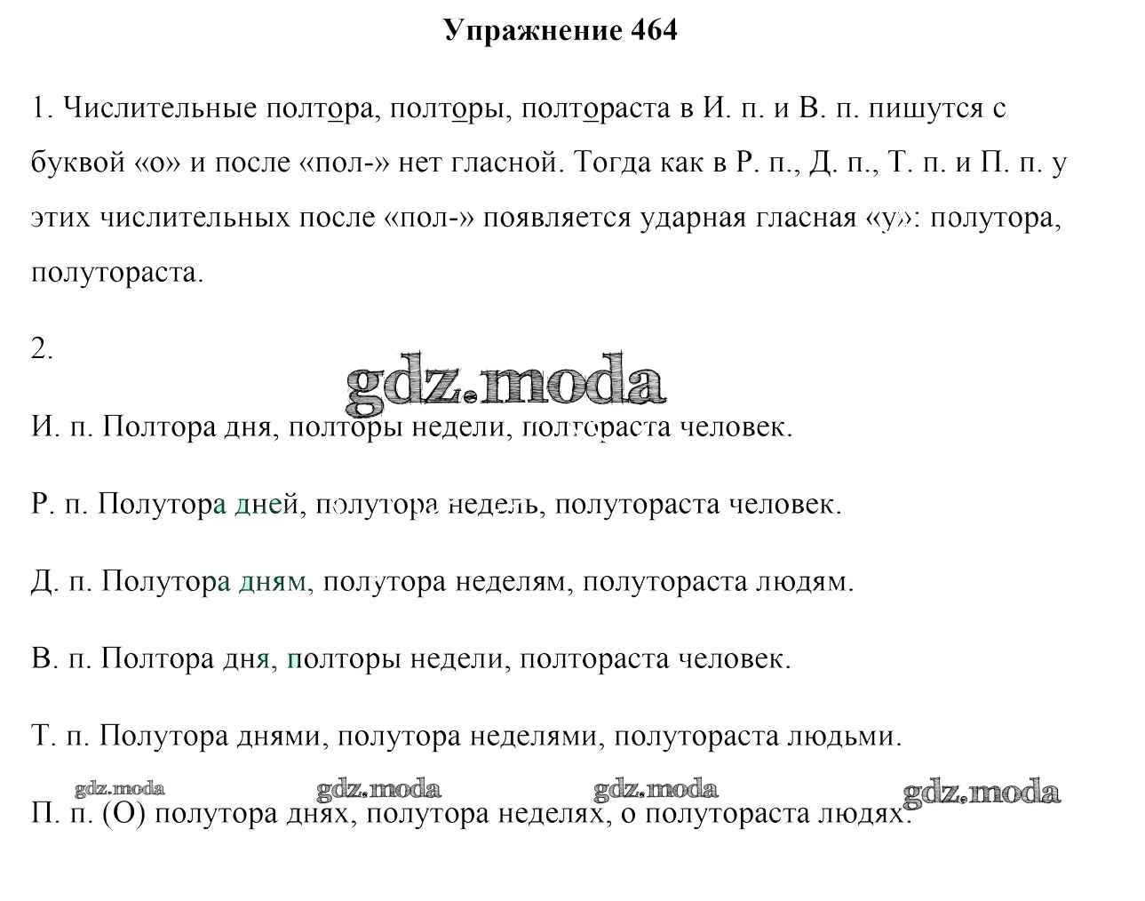 ОТВЕТ на задание № 464 Учебник по Русскому языку 6 класс Мурина