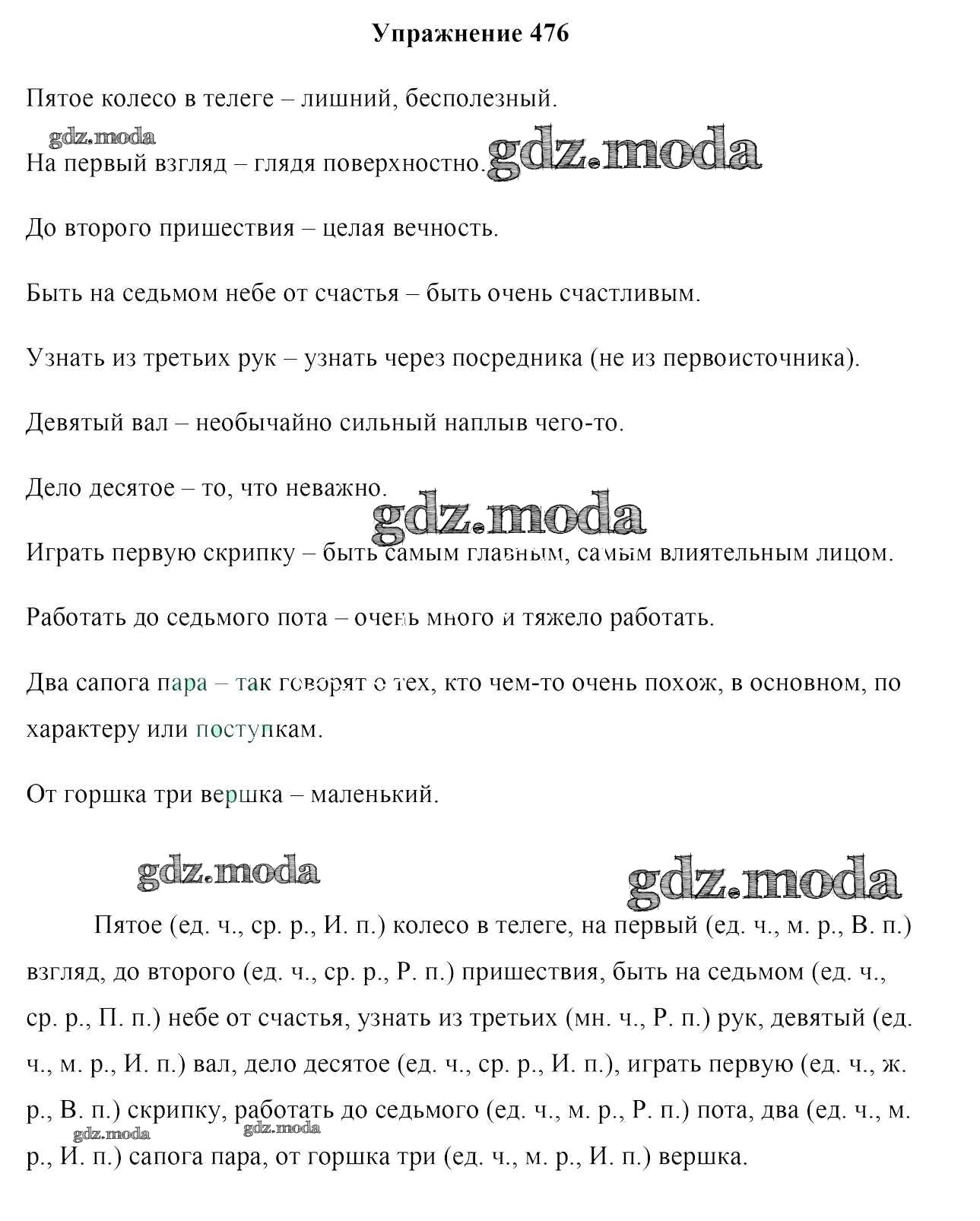ГДЗ решение к заданию № 476 Русский язык 6 класс Мурина Л.A Национальный институт образования 2020 Часть ФГОС бесплатно на гдз.мода!