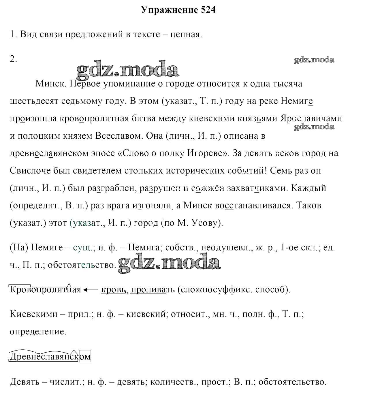 ОТВЕТ на задание № 524 Учебник по Русскому языку 6 класс Мурина